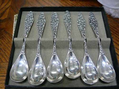 BOXED SET OF SILVER PLATED COFFEE SPOONS MARKED 90