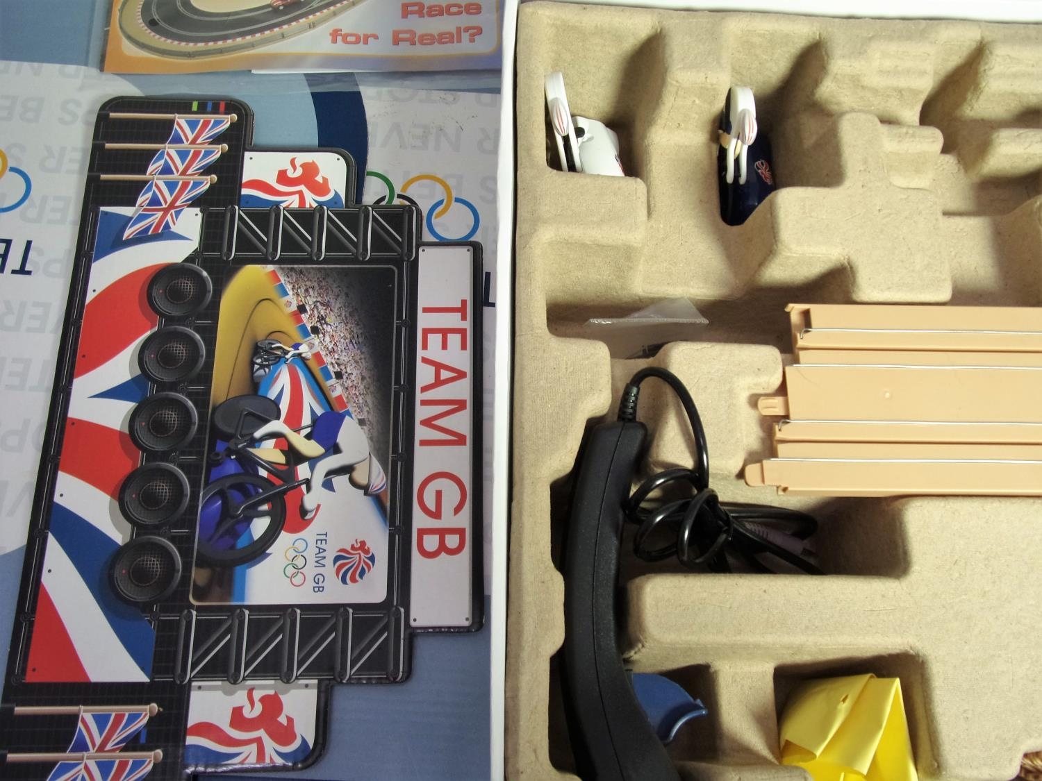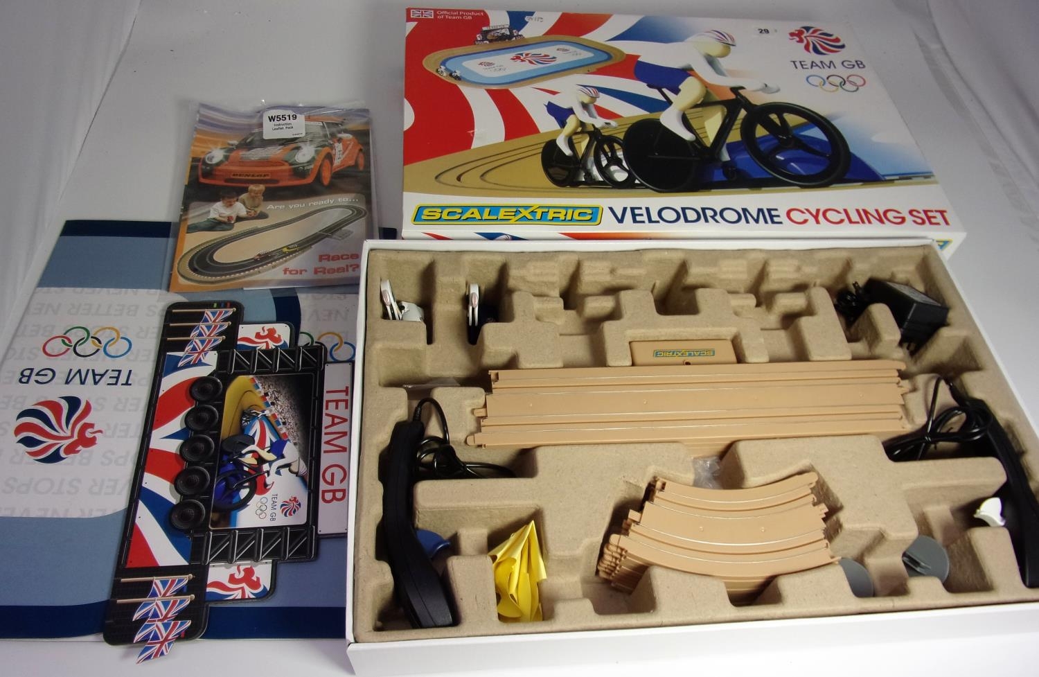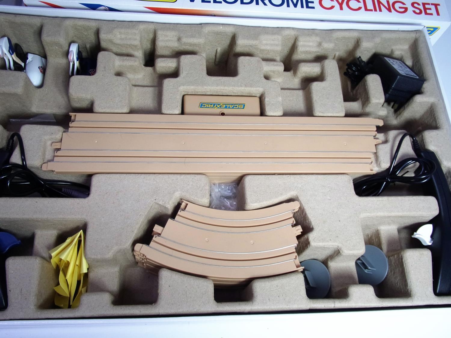 SCALEXTRIC VELODROME CYCLING SET OFFICIAL PRODUCT OF TEAM GB FOR OLYMPICS 2012 CONTENTS PER PHOTOGRAPH