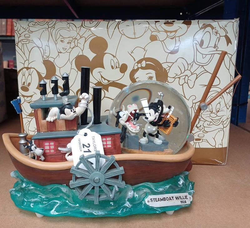 DISNEY STORE STEAMBOAT WILLIE MICKEY MOUSE MUSICAL SNOW GLOBE. BOXED