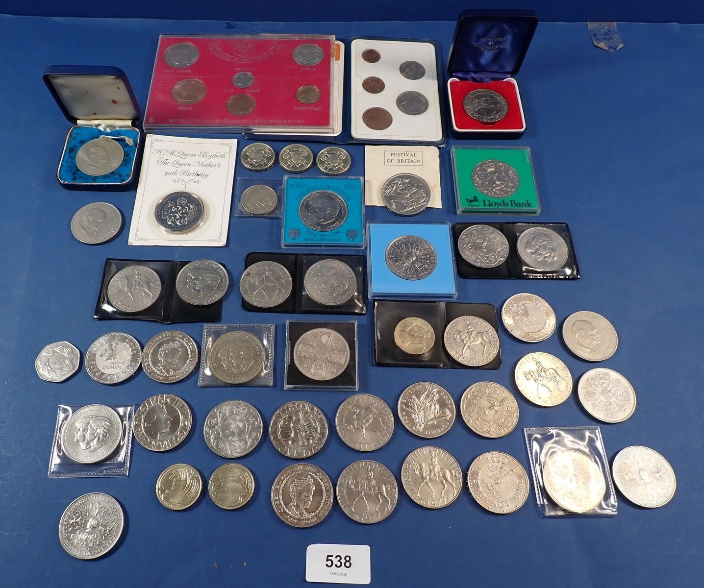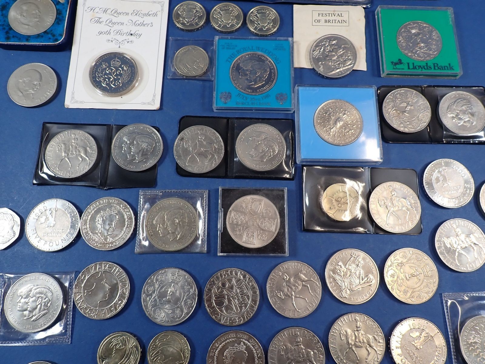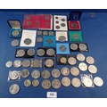 A collection of British commemorative crowns including George V Festival of Britain 1951, Elizabeth II Coronation, Churchill, Weddings etc plus a 1967 coinage of Great Britain set etc