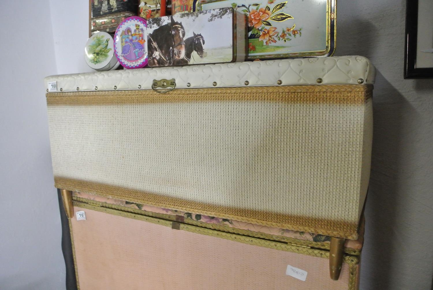 A wicker ottoman.