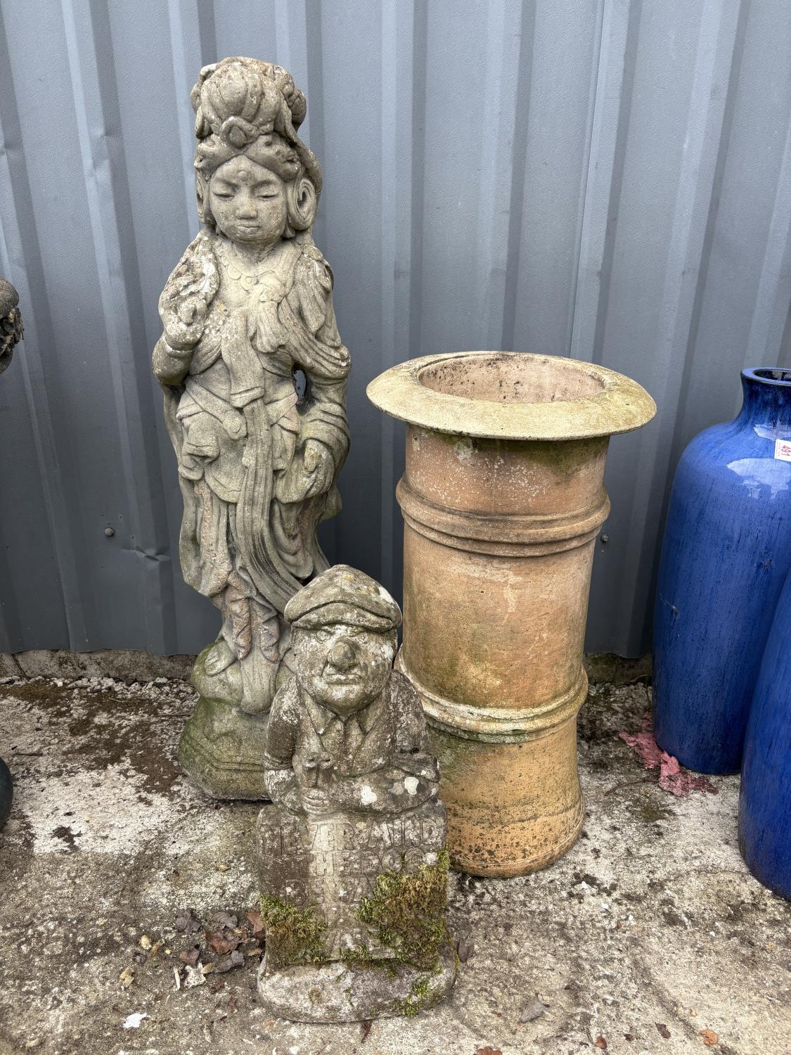 Chimney pot, oriental figure, height 103 cms and an old man figure