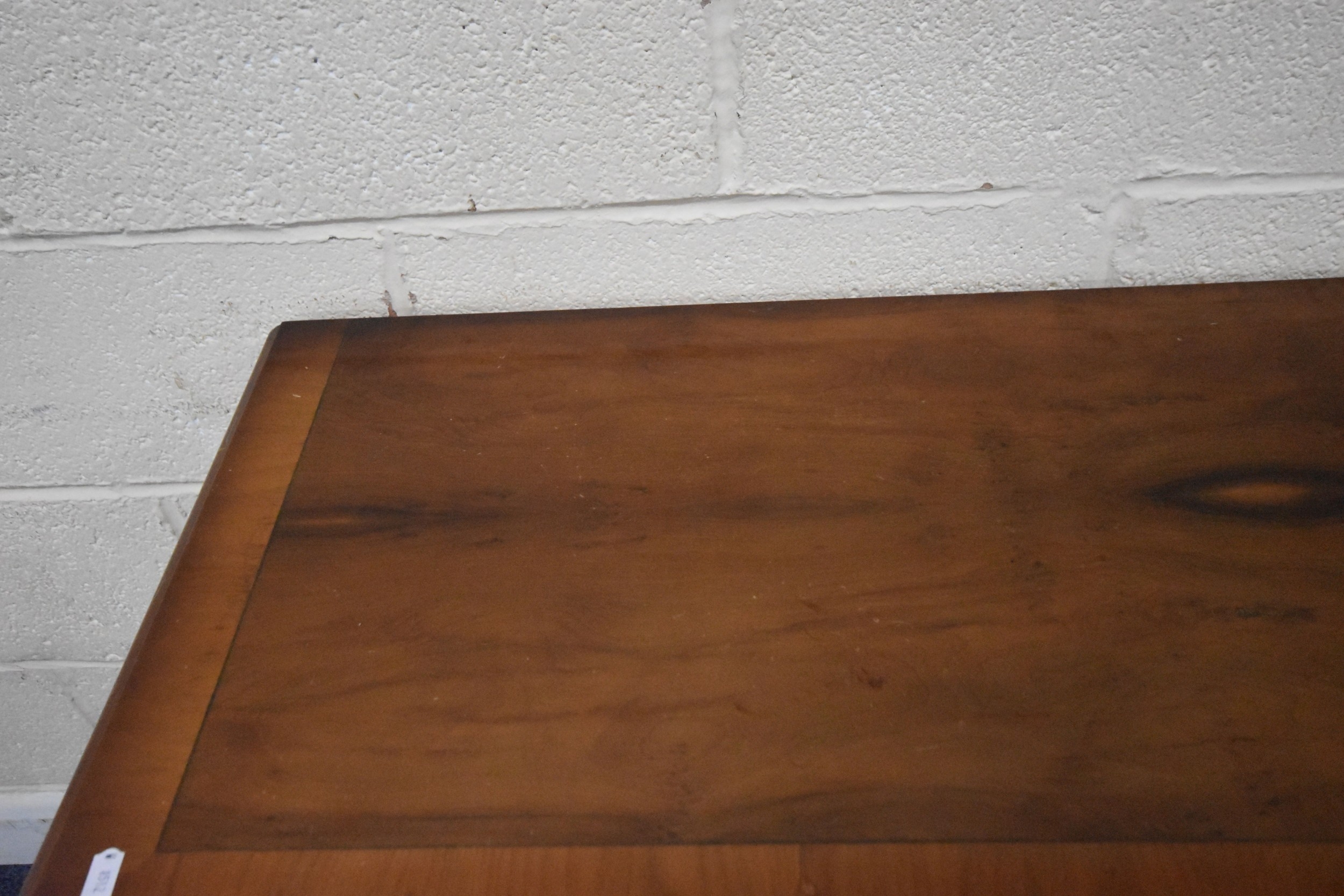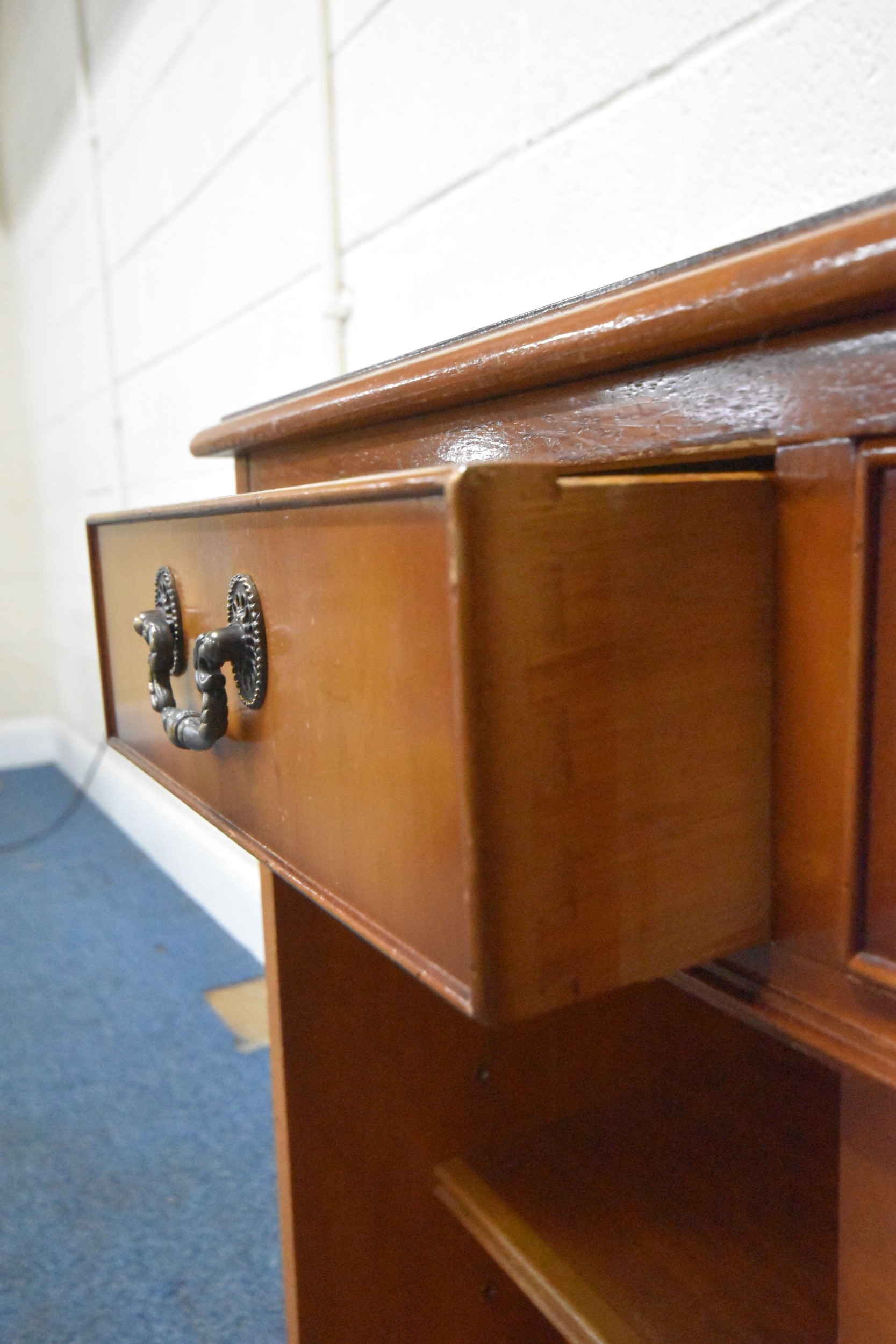 A REPRODUCTION YEW WOOD SIDEBOARD, fitted with three drawers...