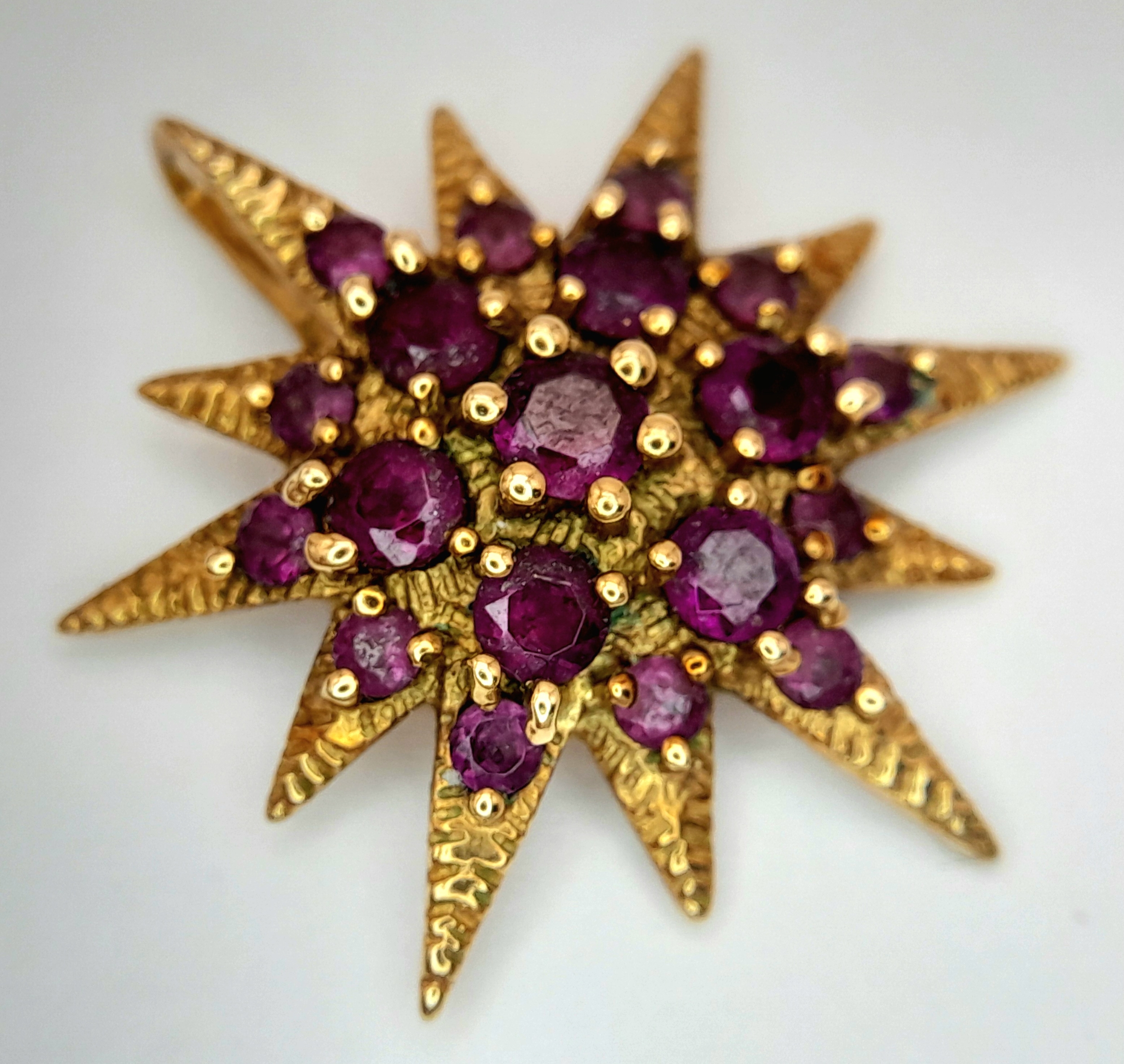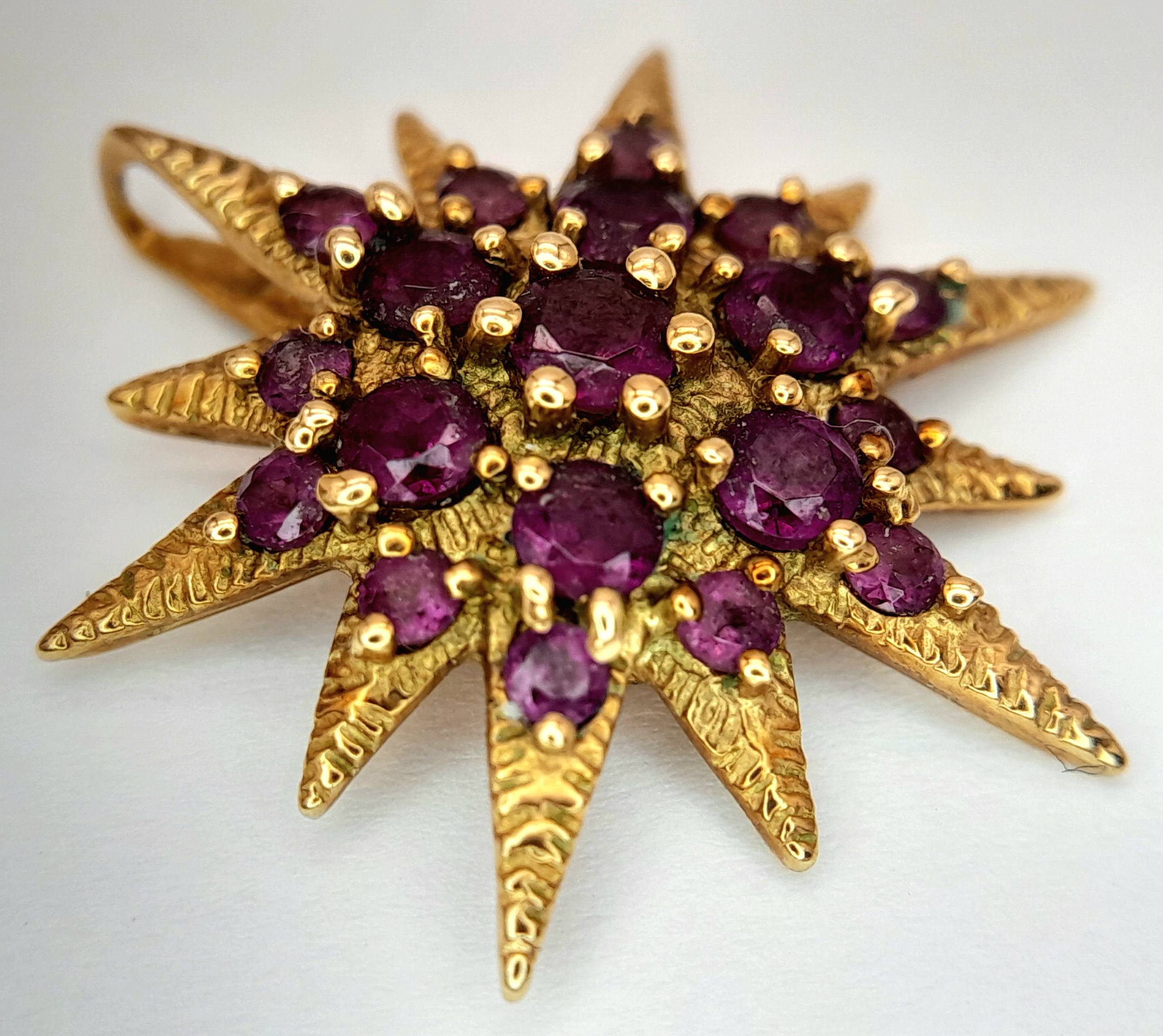 A 9K Yellow Gold and Amethyst Star Pendant. 2.5cm. 2.93g. Ref: 2915805.