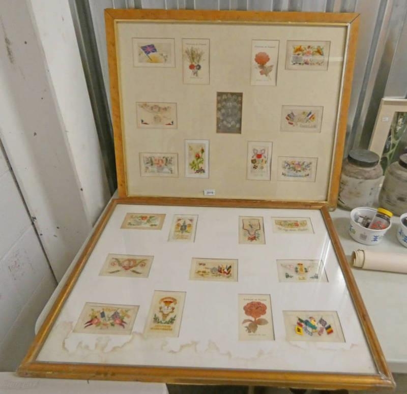 2 LARGE FRAMED PICTURES OF 1914-18 SEWN WORK CARDS