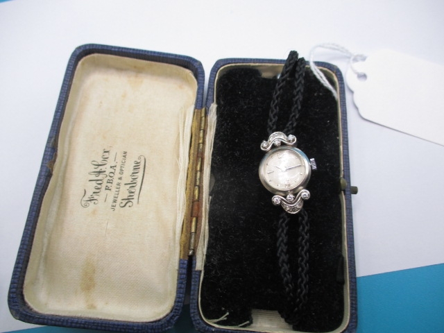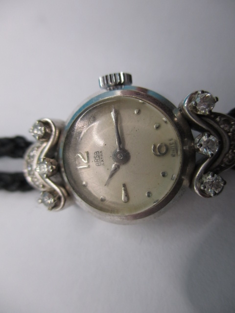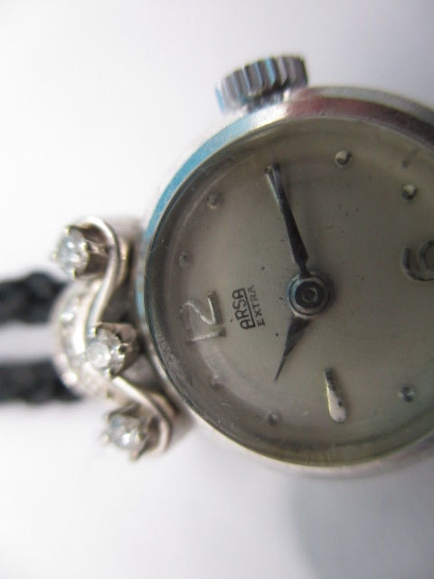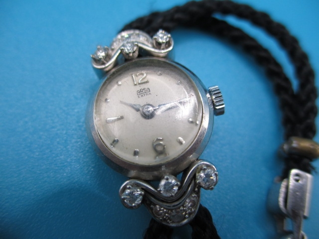 A vintage ladies cocktail watch, the case marked 750 for white gold with diamond set shoulders, the dial marked ARSA Extra, not tested as to function