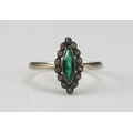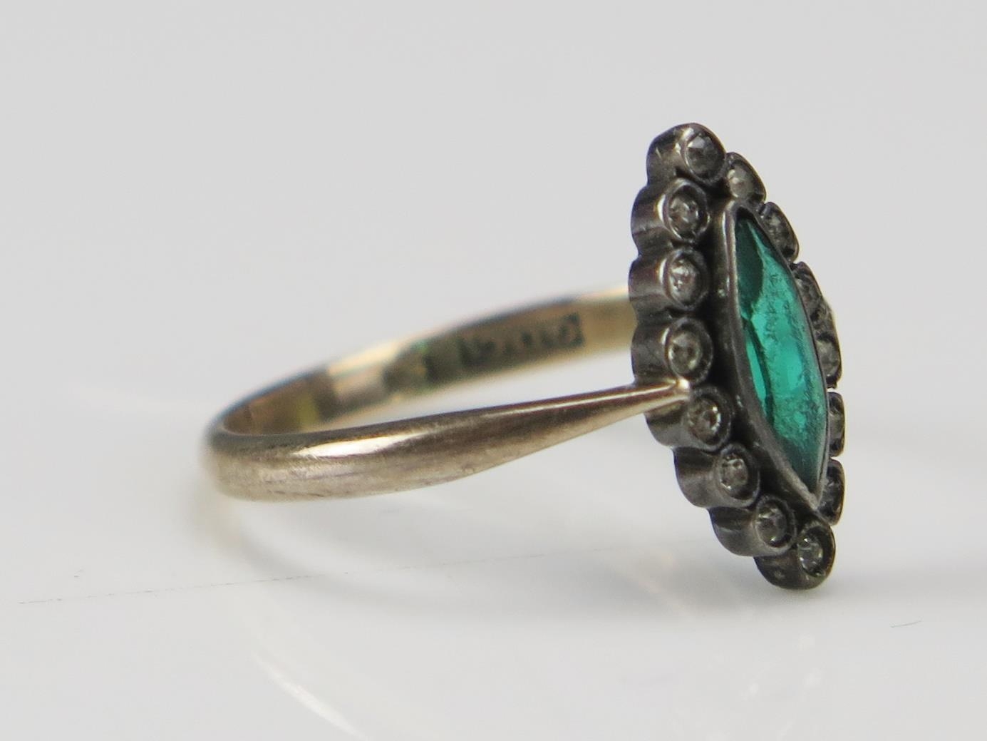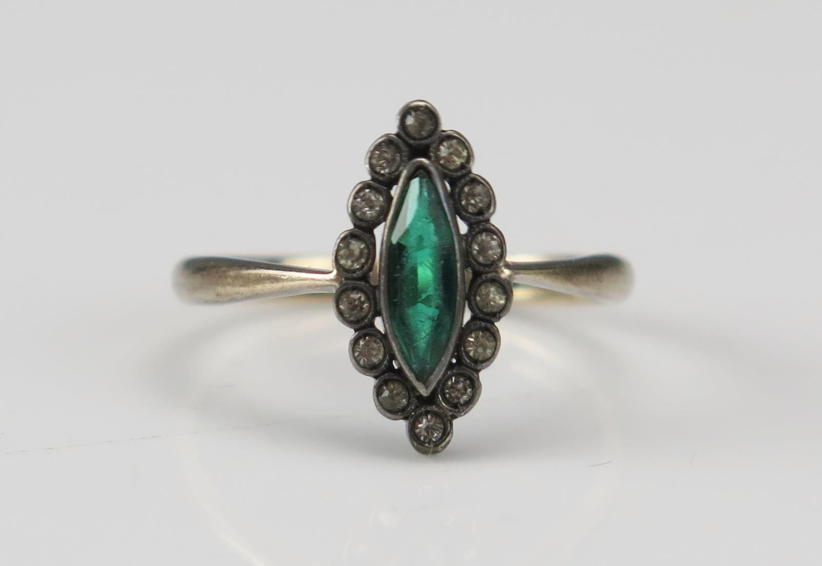 A 9ct Gold and Paste Set Marquis Shaped Ring, 13.6x7.3mm head, size K.5, stamped 9ct, 1.74g