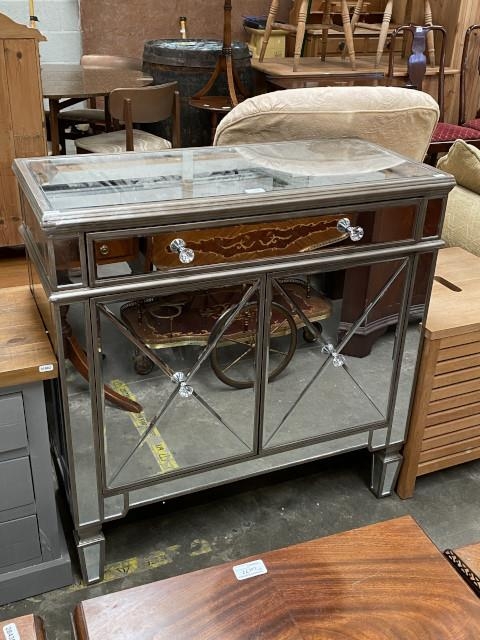 Contemporary mirrored 2 door sideboard (91H 88W 40D cm)