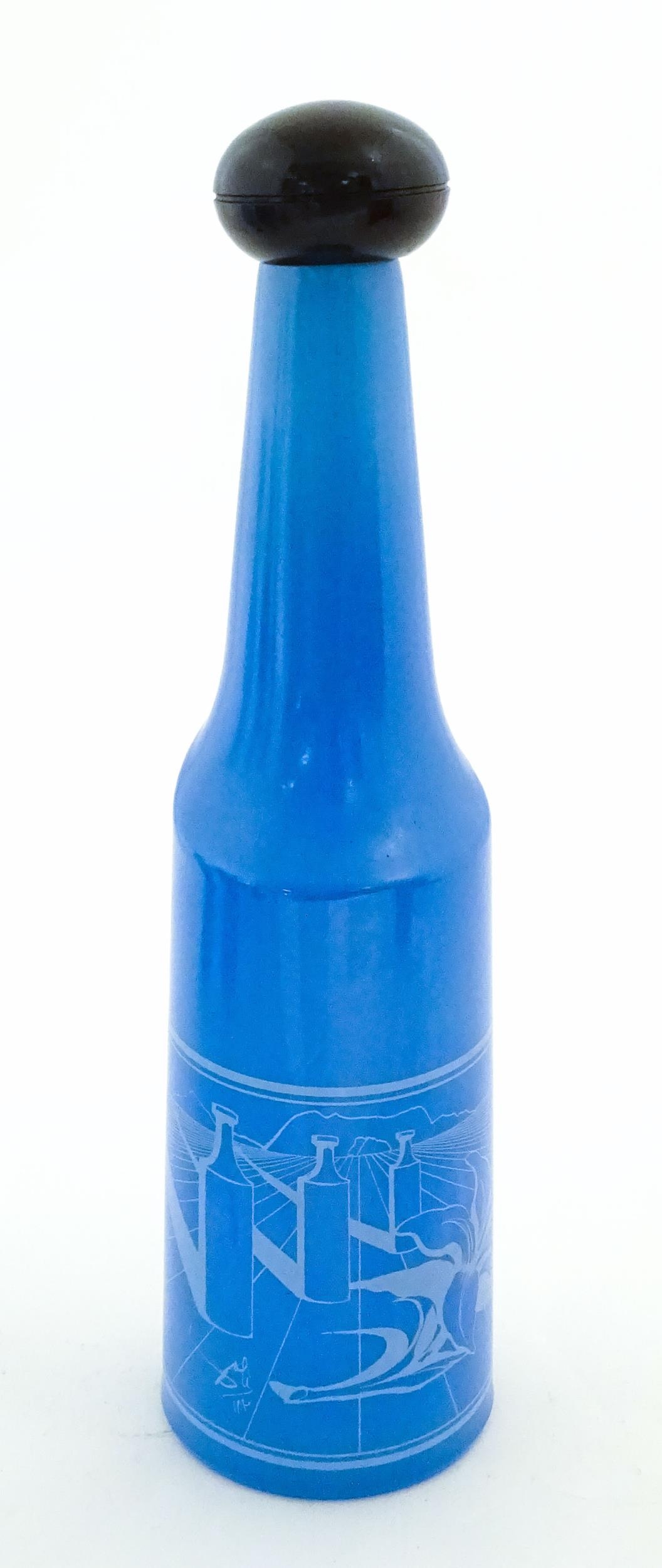 A 1970s Rosso Antico glass bottle designed by Salvador Dali. Approx. 13 1/42 high