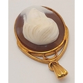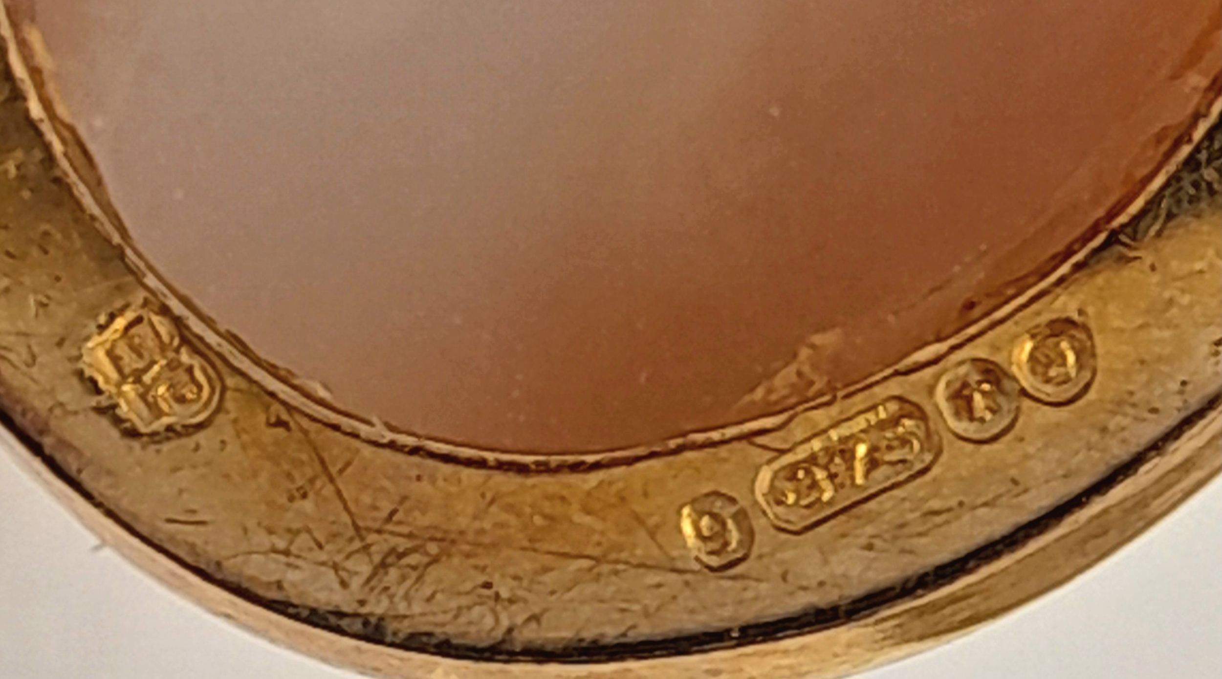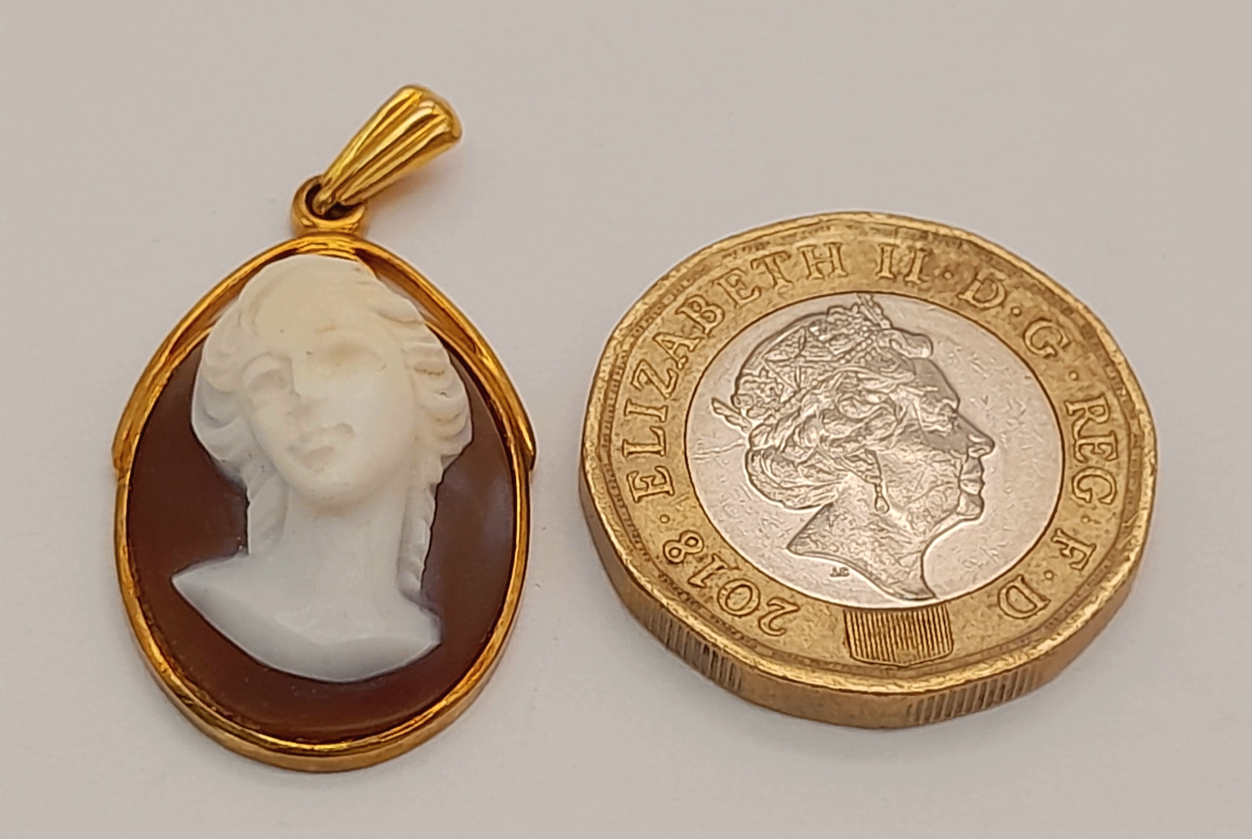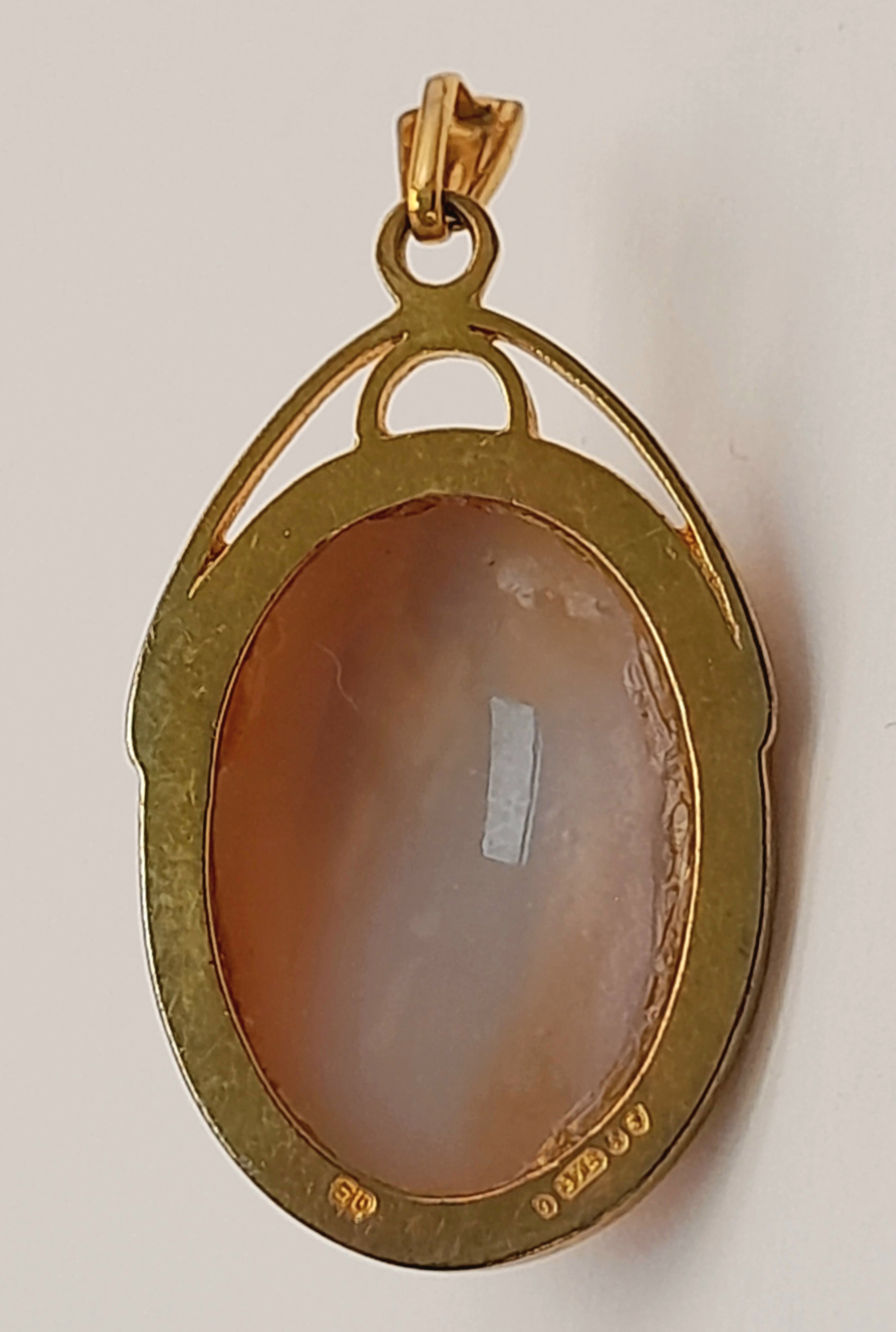 A 9K Yellow Gold Ornate Cameo Pendant. 3cm. 3.7g.