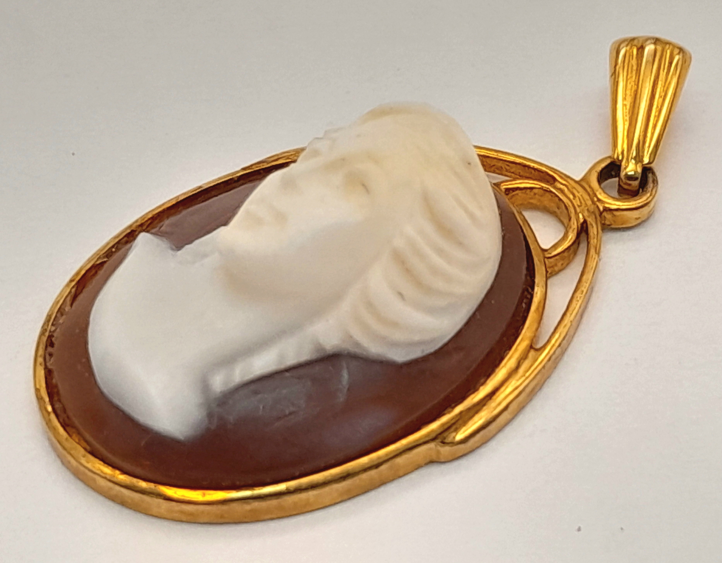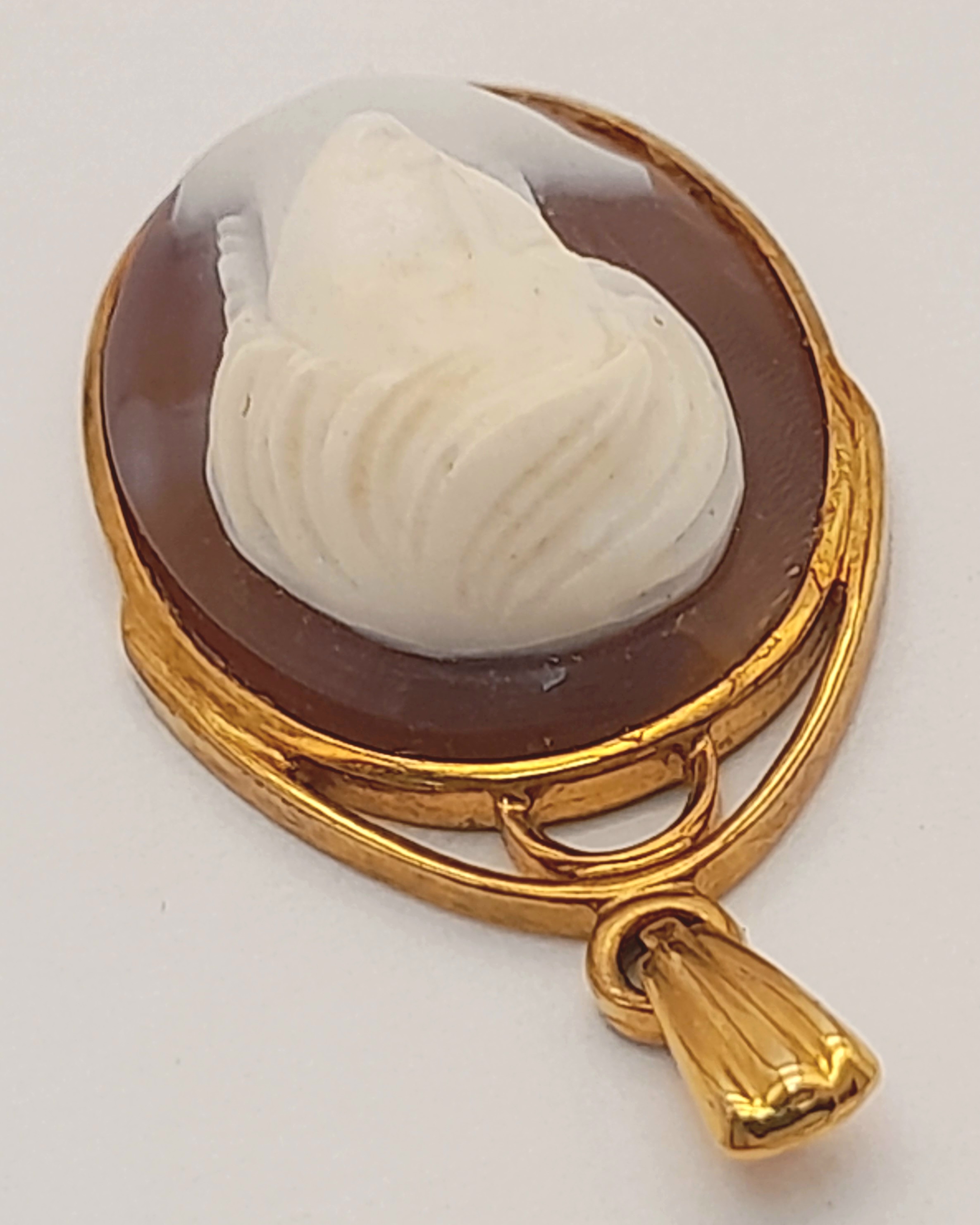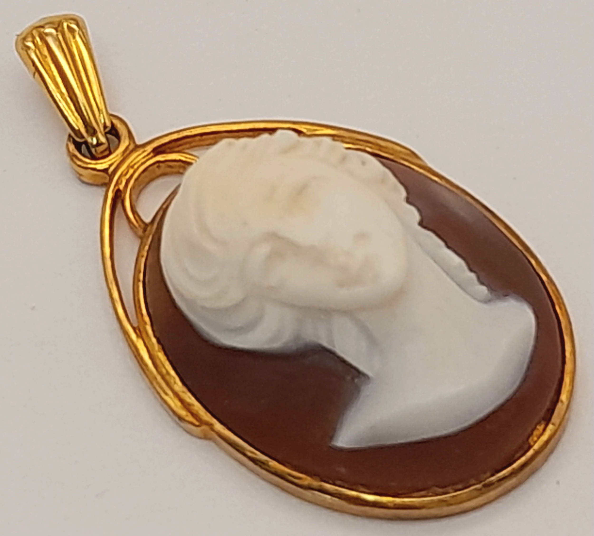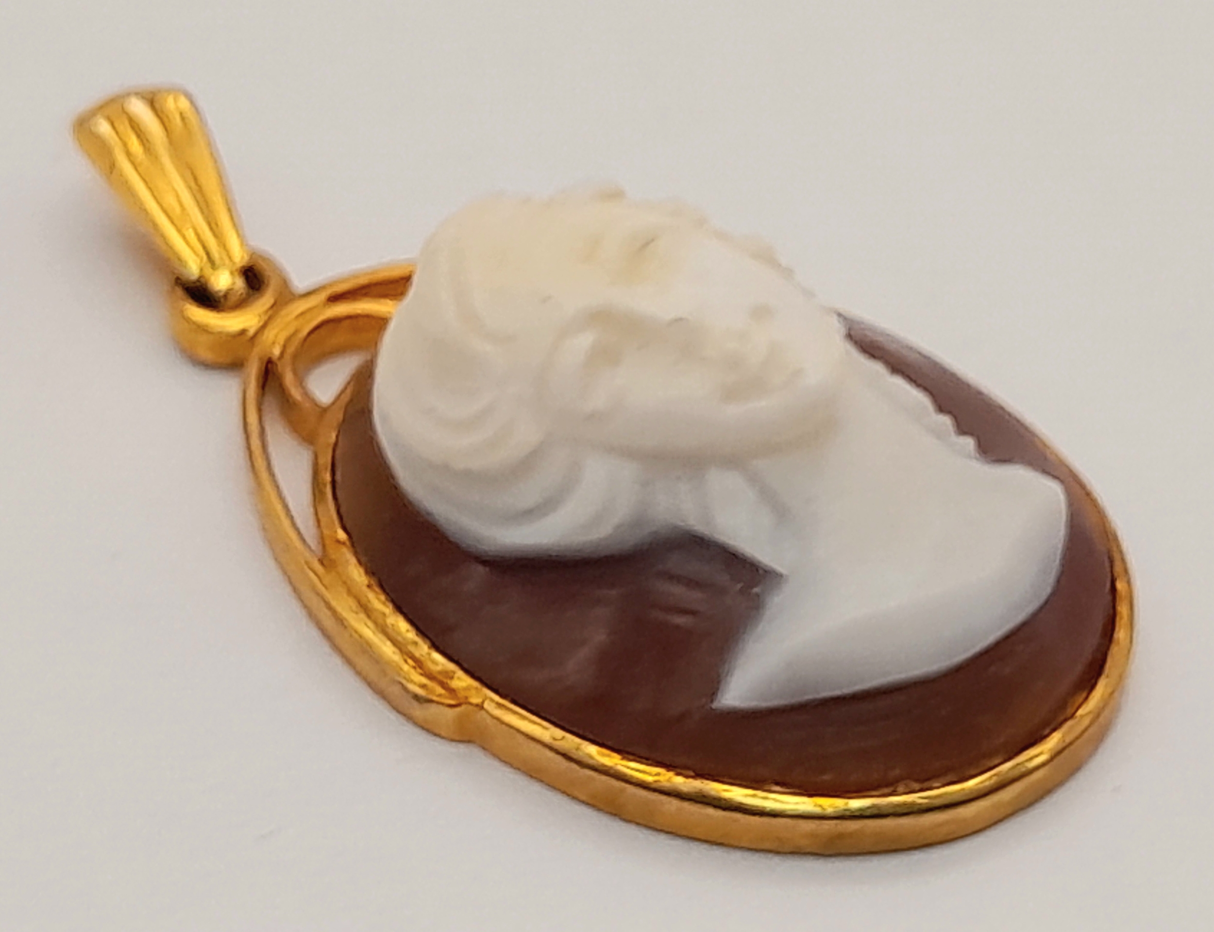 A 9K Yellow Gold Ornate Cameo Pendant. 3cm. 3.7g.