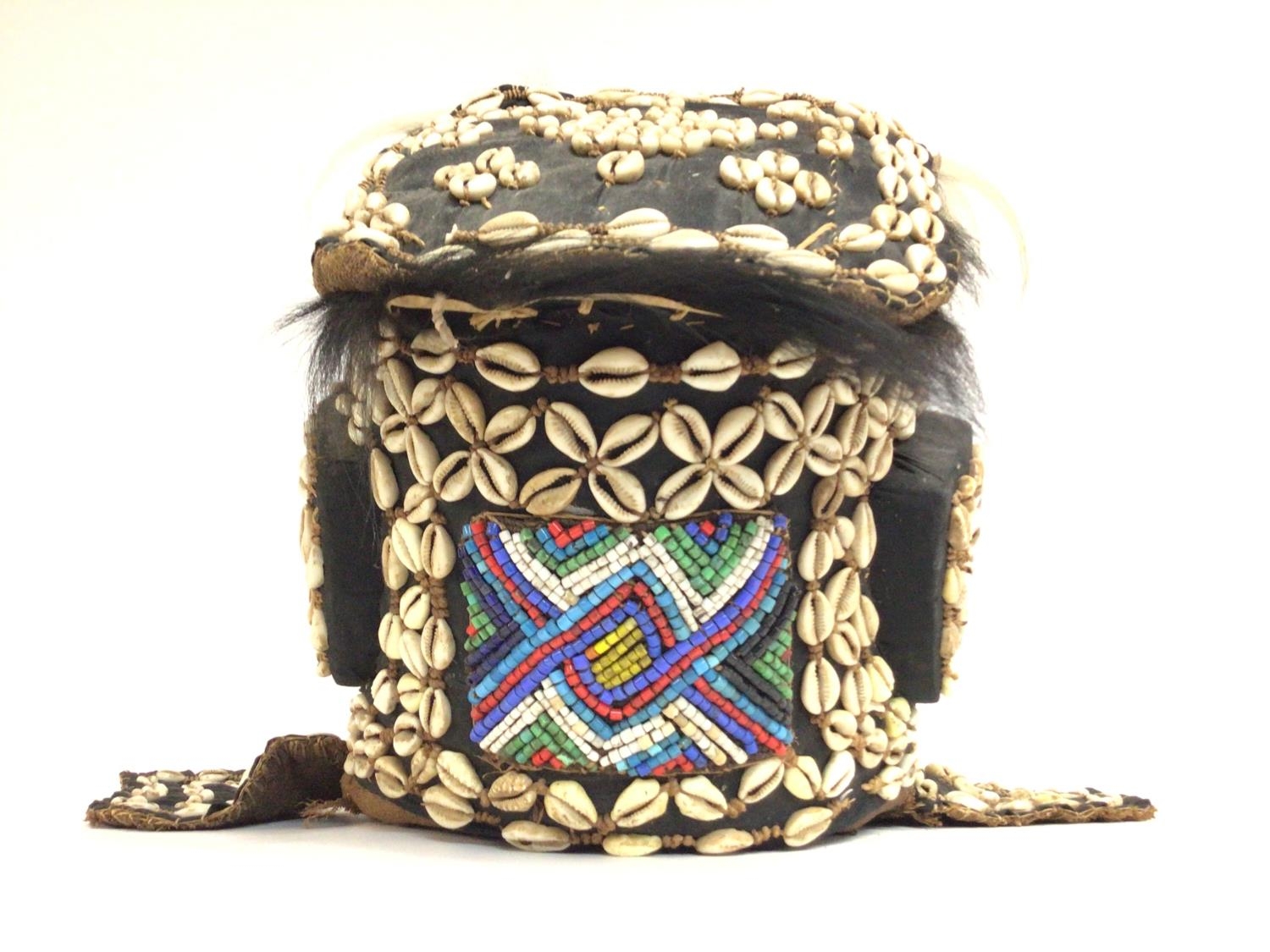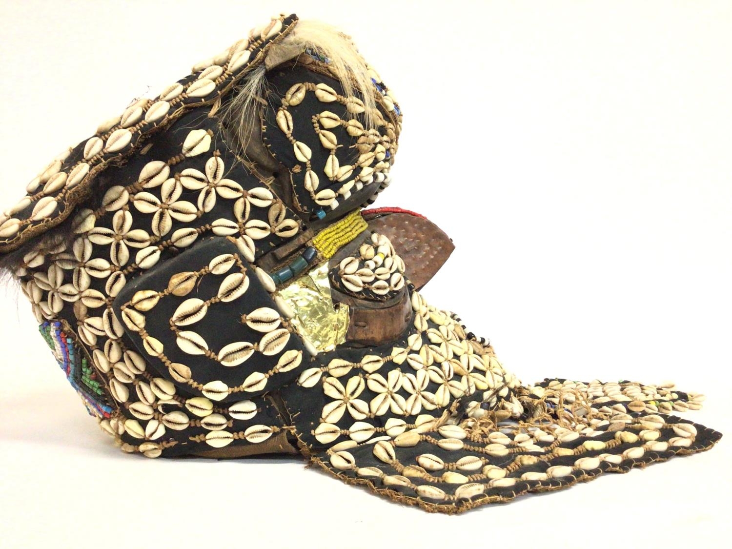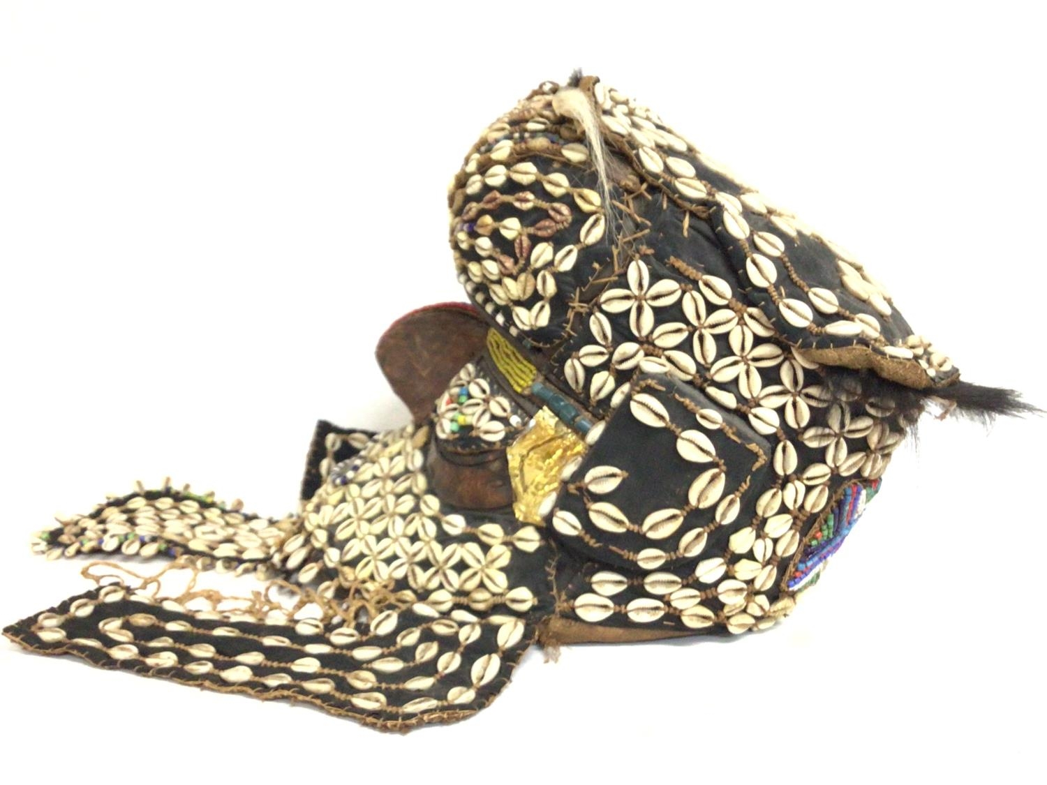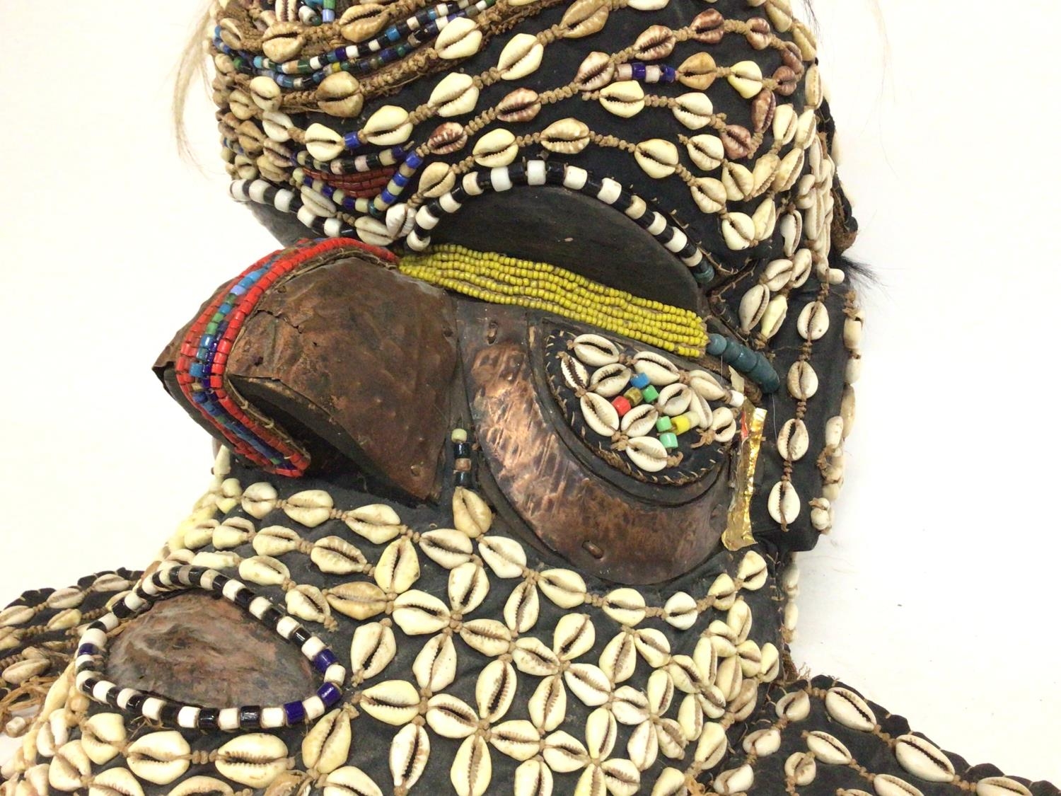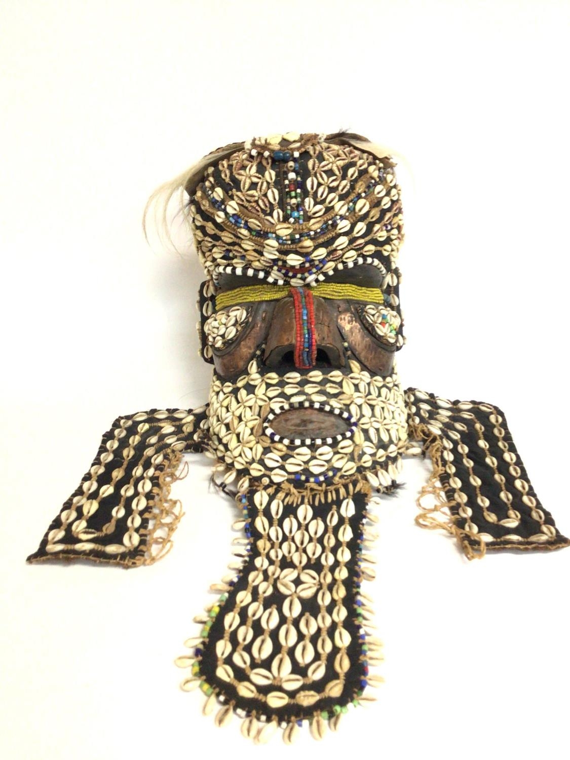 African tribal shell carved wood mask, approximately 36cm tall. Postage cat C