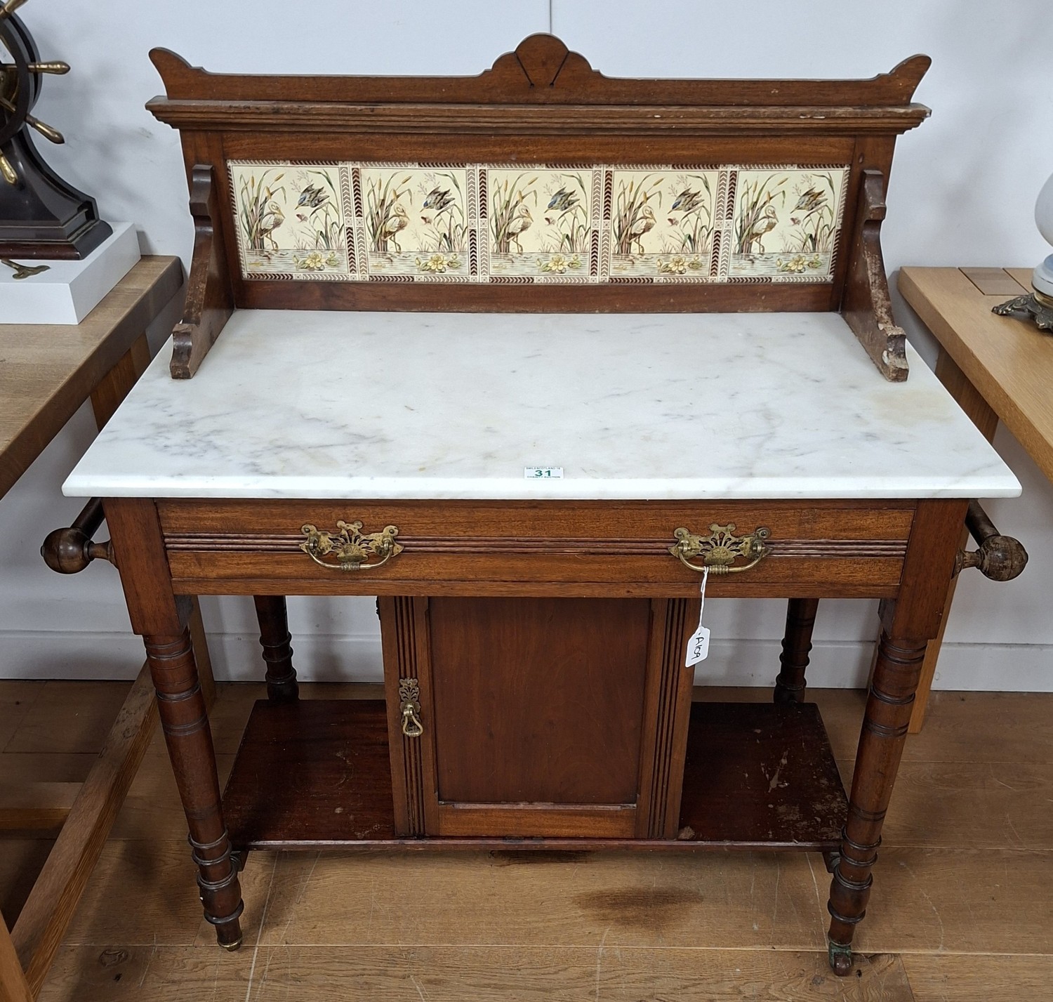 Victorian marble topped washstand with tiled splashback 100cm W x 50cm D x 105cm H approx.