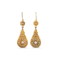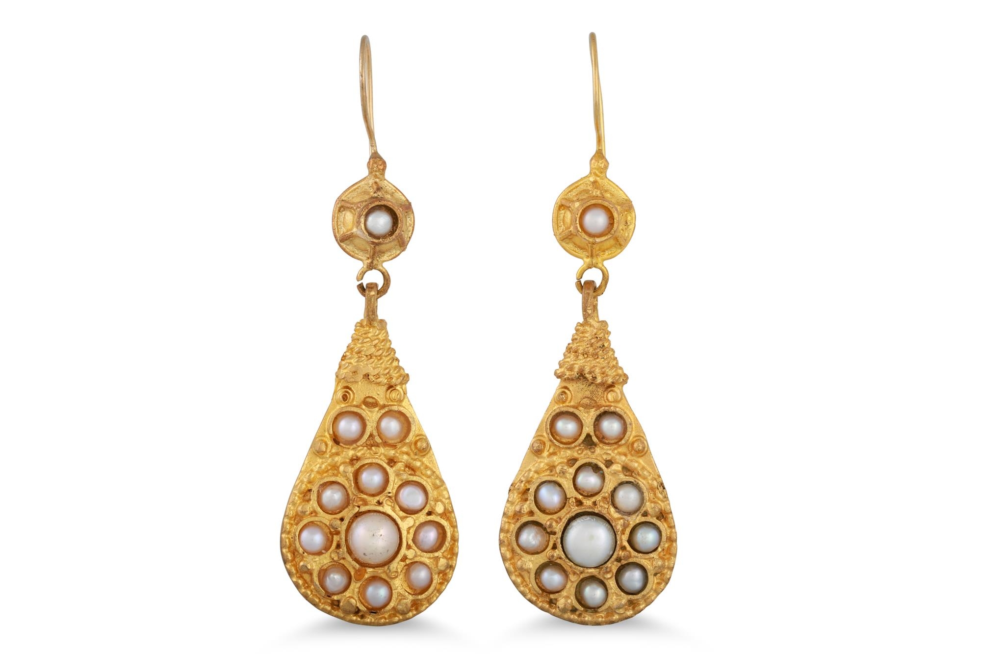 A PAIR OF VINTAGE EASTERN DROP EARRINGS, set with Mabé pearls