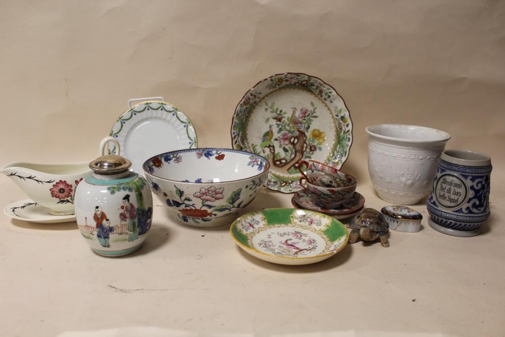 FIVE TRAYS OF ASSORTED CERAMICS AND CHINA, to include Sadler, Royal Doulton and Minton examples