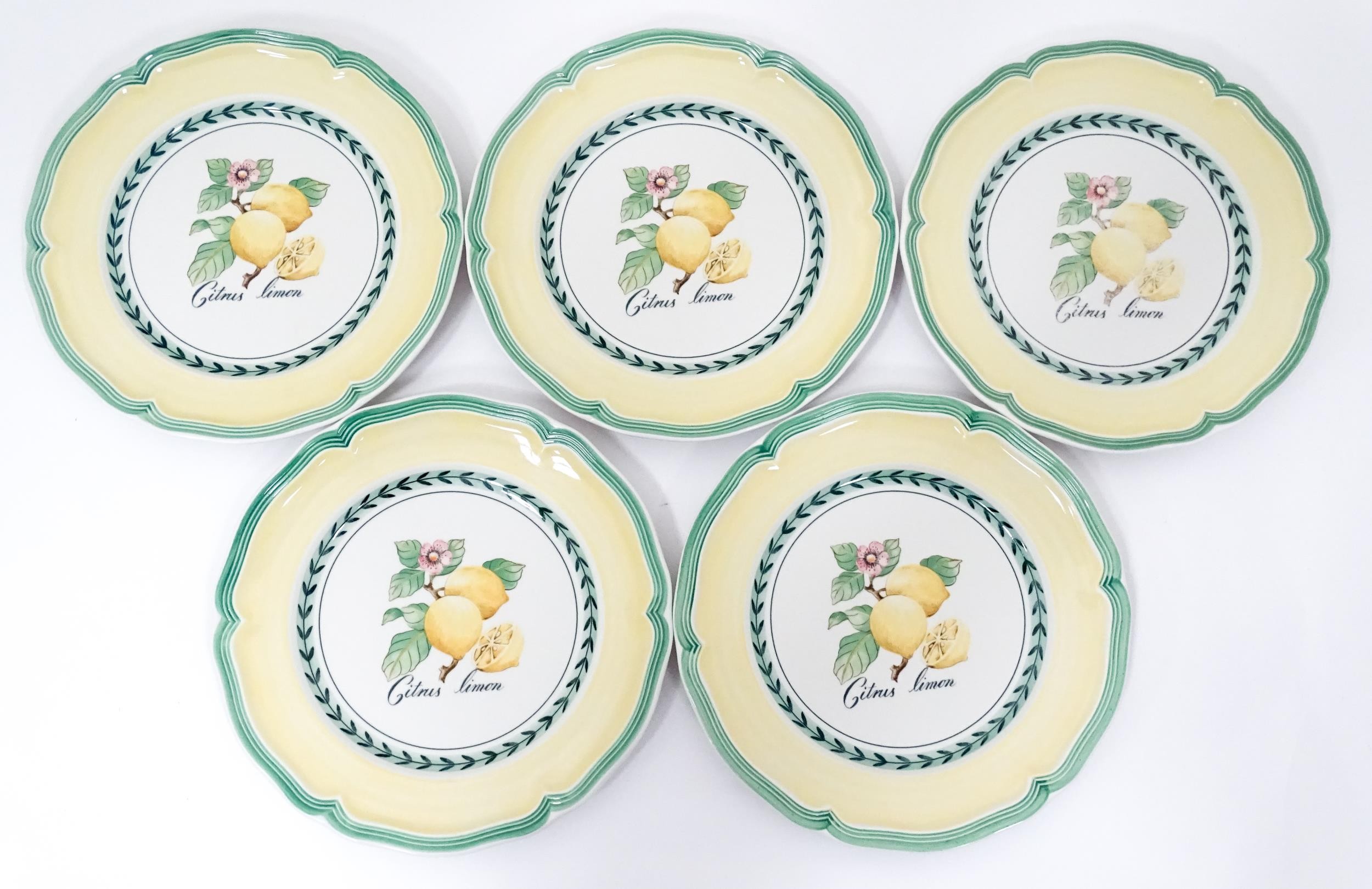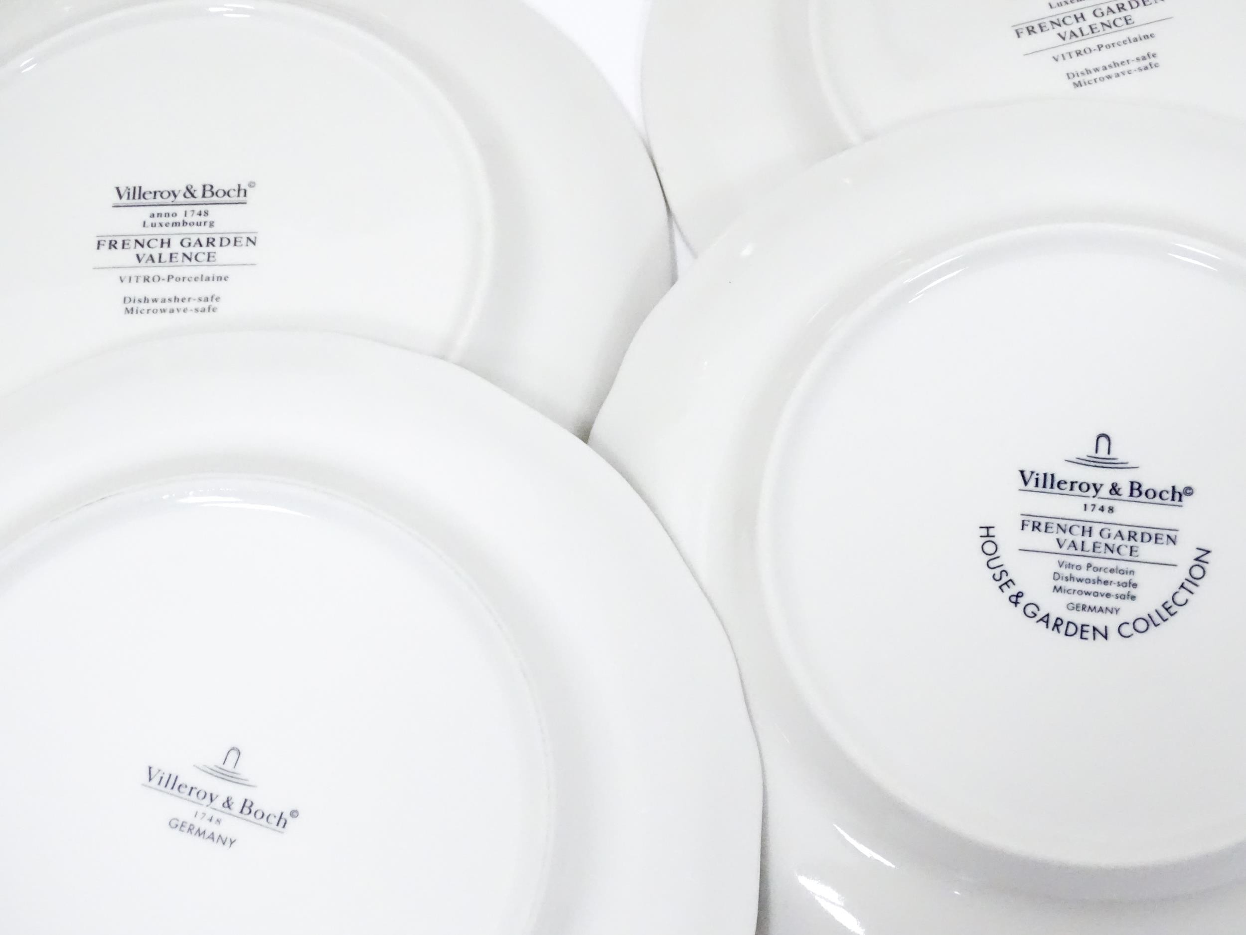 A quantity of Villeroy & Boch tea and dinner wares in the French Garden Valence and French Garden Fleurence patterns to include plates, sugar bowl, milk jug, cups, saucers, etc. Plates approx. 10 1/4" diameter