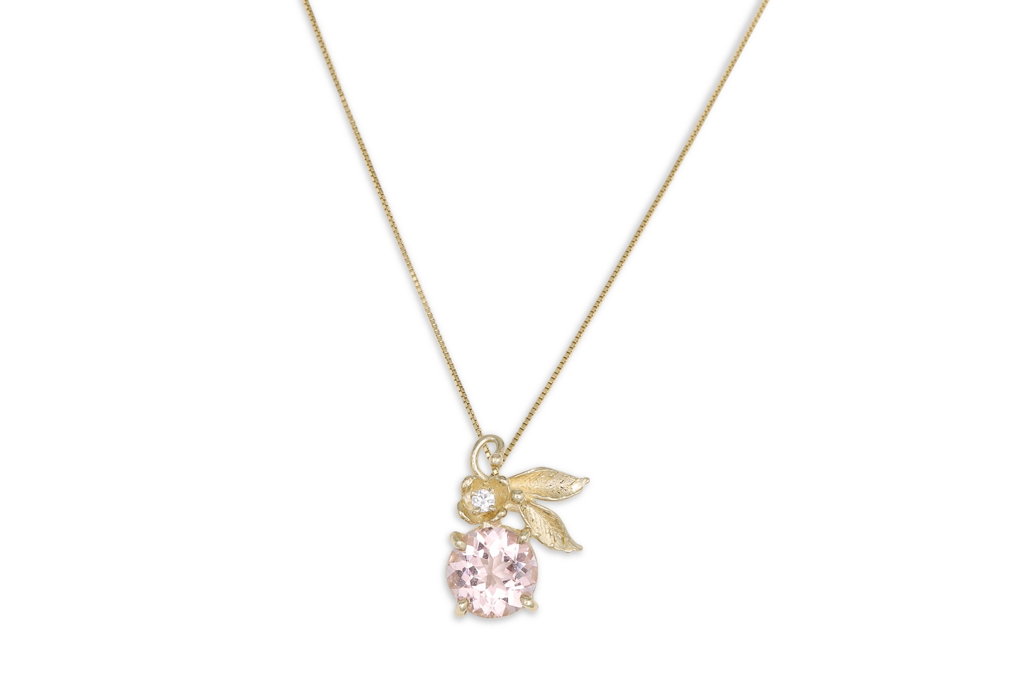 A MORGANITE PENDANT OF NATURALISTIC FORM, mounted in 12ct gold on an 18ct chain. Estimated: weight of morganite: 2.14 ct, 15" chain