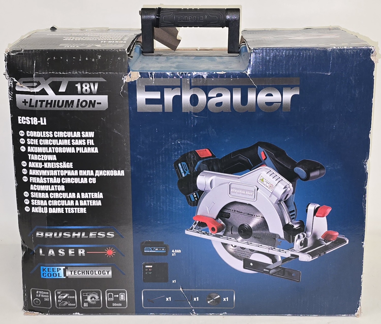 Erbauer ECS18-Li 18V Lithium Ion cordless circular saw boxed appears new (REF P64).