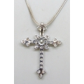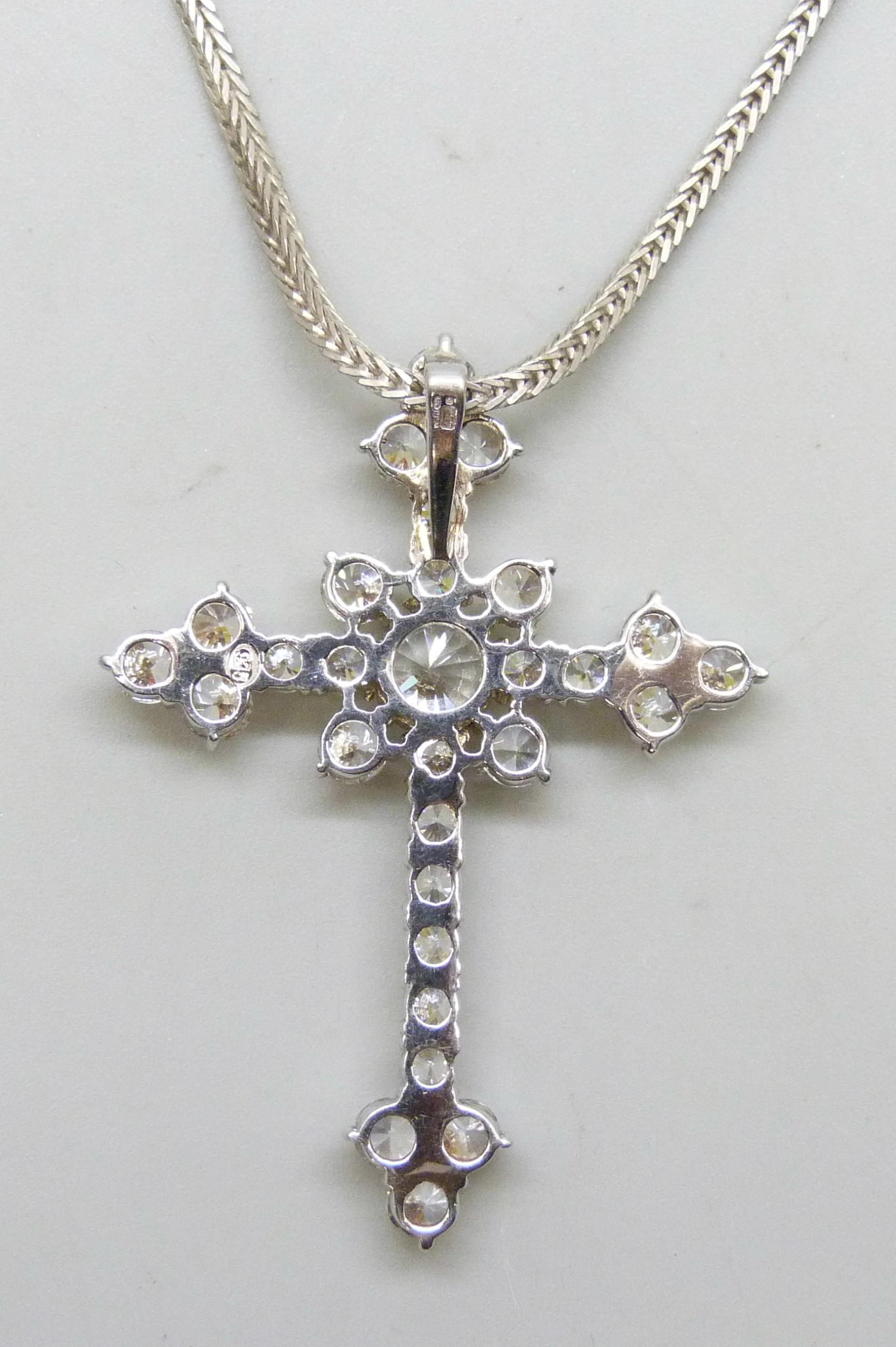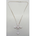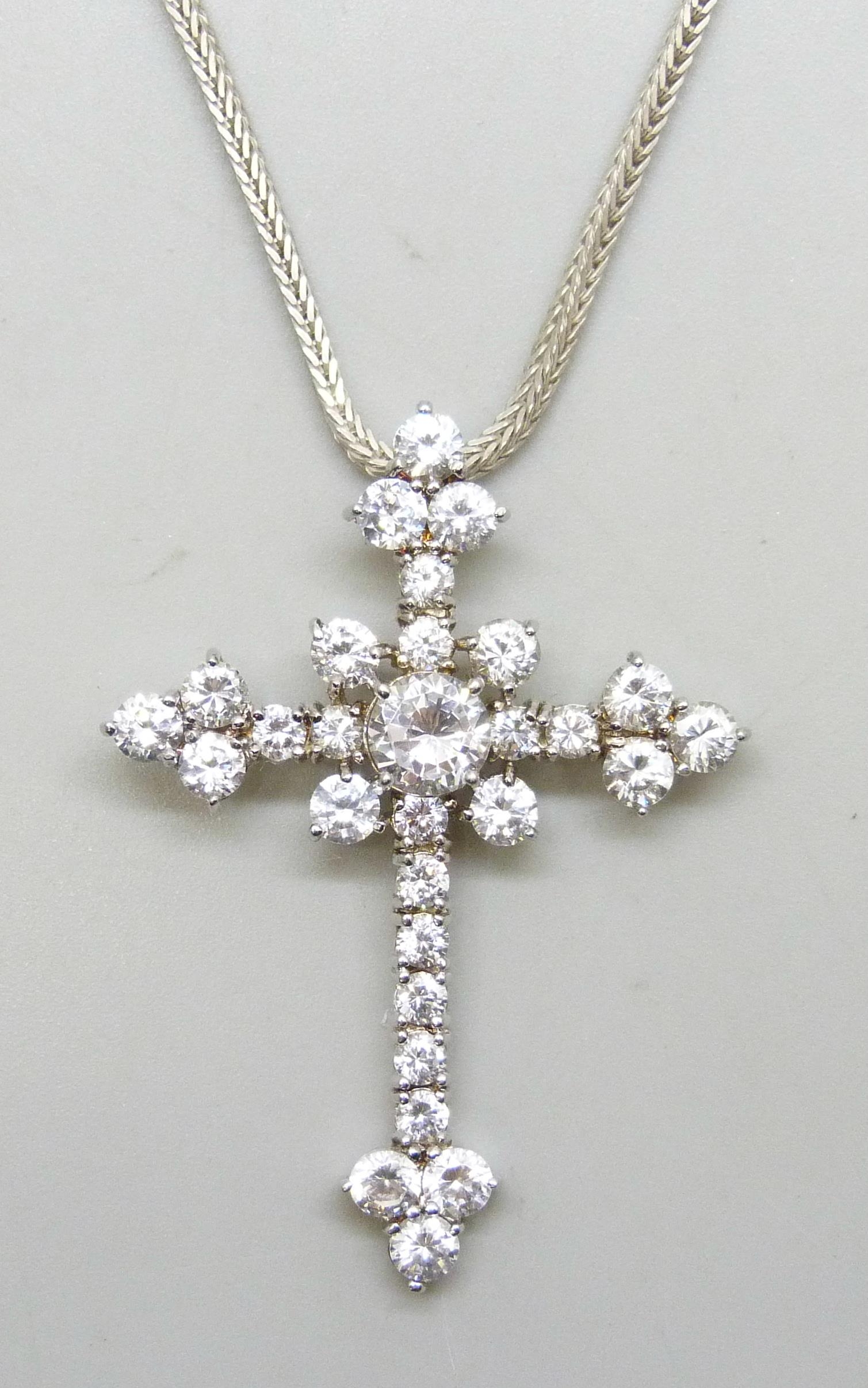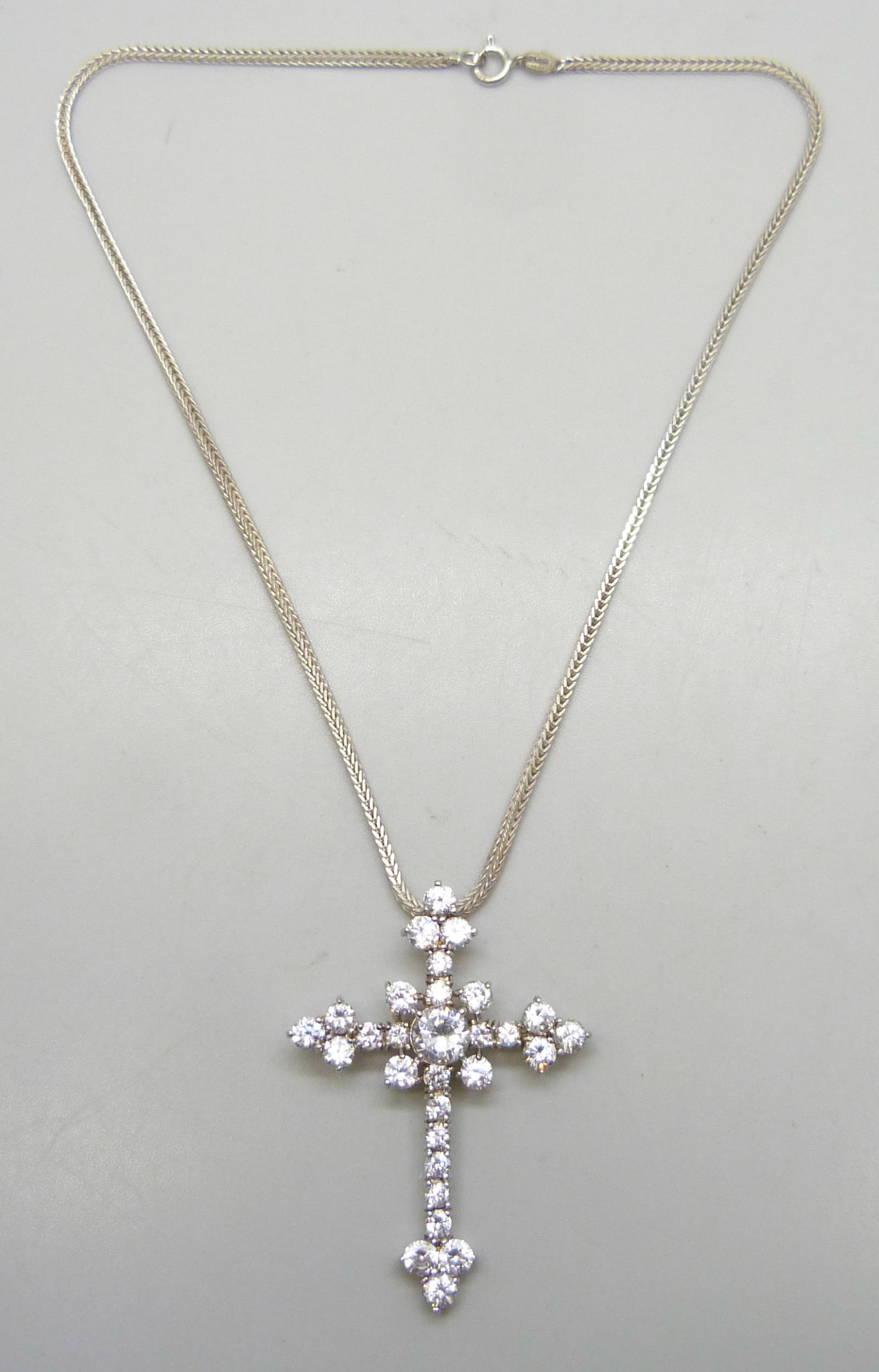 A large sterling silver crucifix and a silver chain, set with white stones, 5cm, 13g