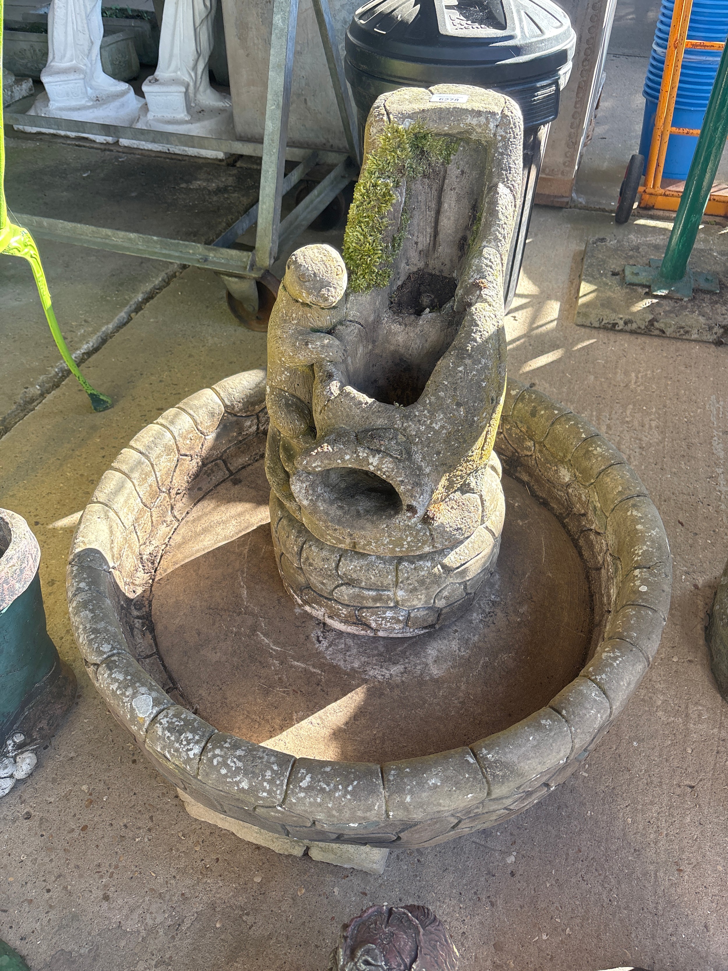A large concrete otter water feature, measuring 74cm high x 75cm wide.