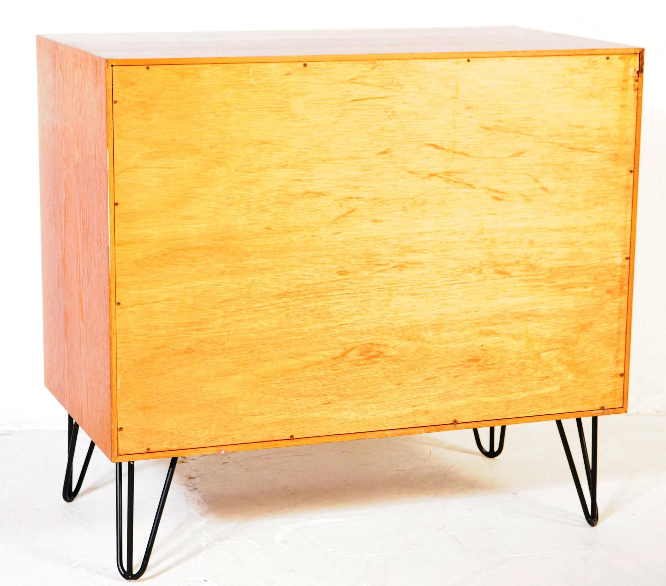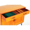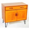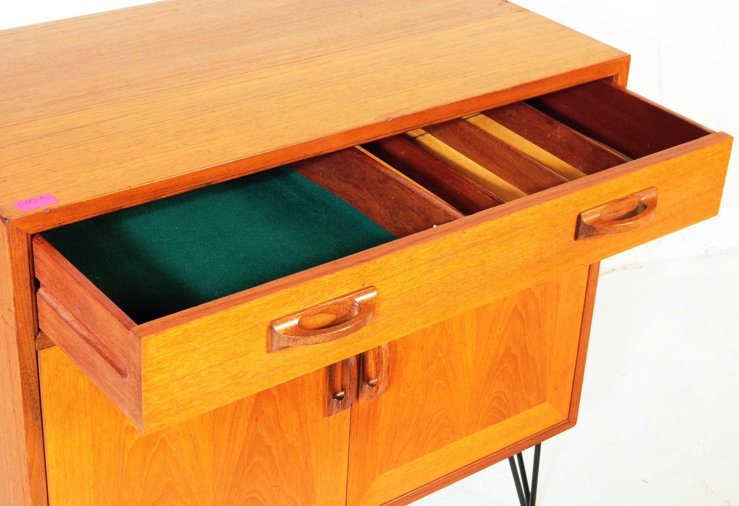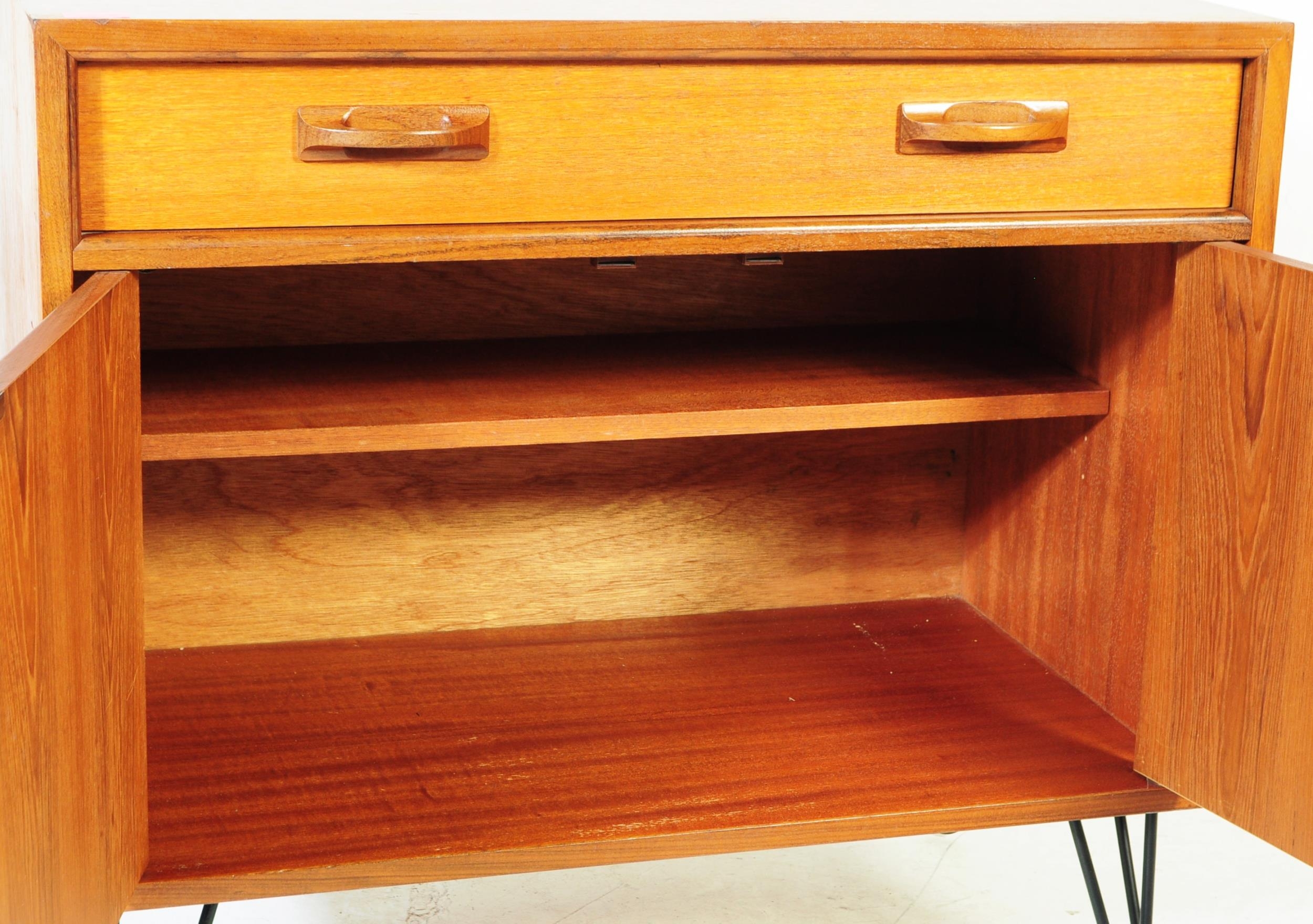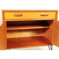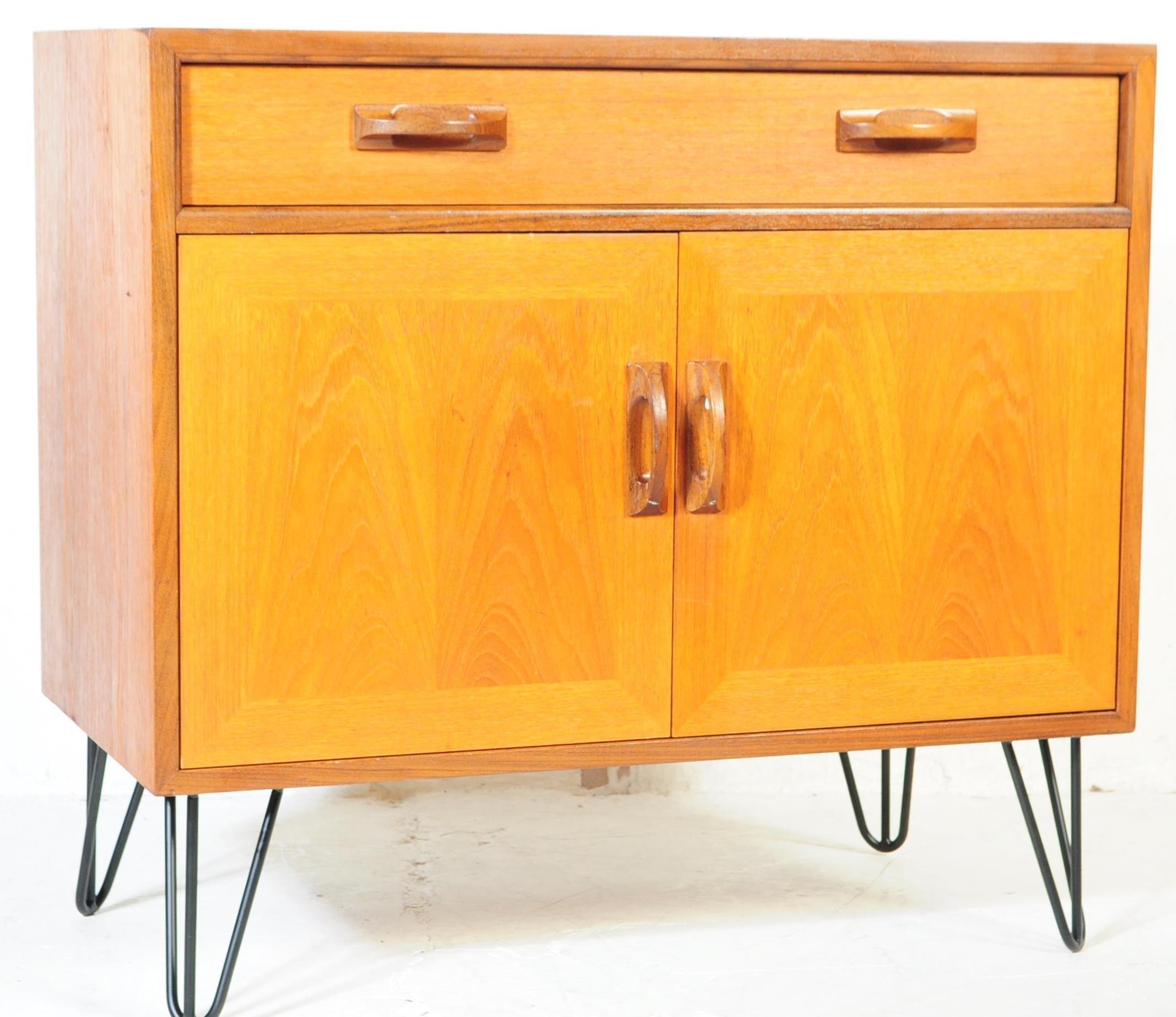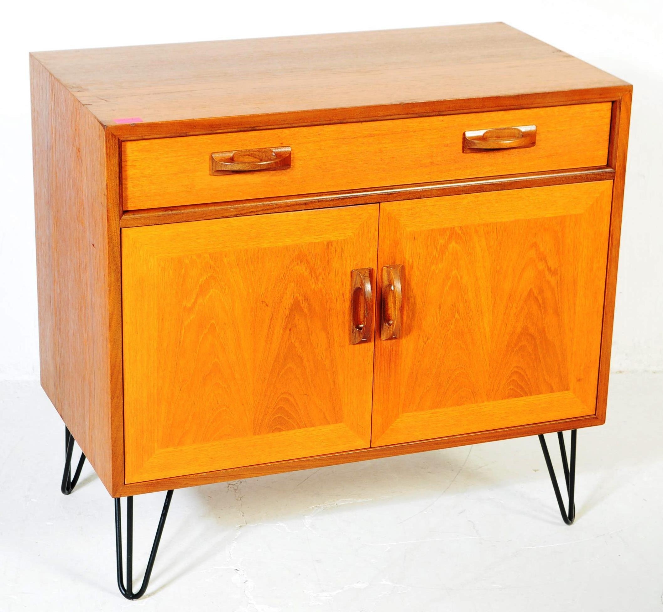 Victor B. Wilkins for G-Plan - Fresco Range - A retro vintage mid 20th Century 1960s teak wood sideboard credenza having a single drawer with lipped handles atop a double door cabinet. All raised on hairpin legs.