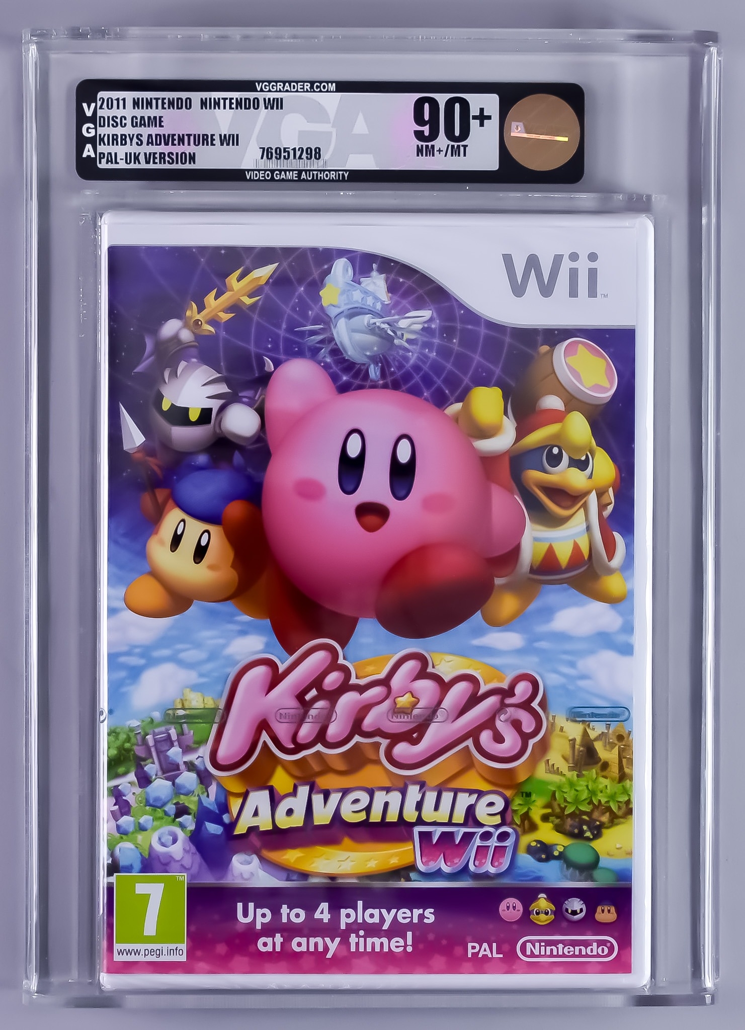 2011 Nintendo Wii – Kirby’s Adventure Wii – PAL/UK Version VGA 90+/NM+/Mint, with Nintendo strip seal and in rigid Perspex case supplied by VGA at the time of grading