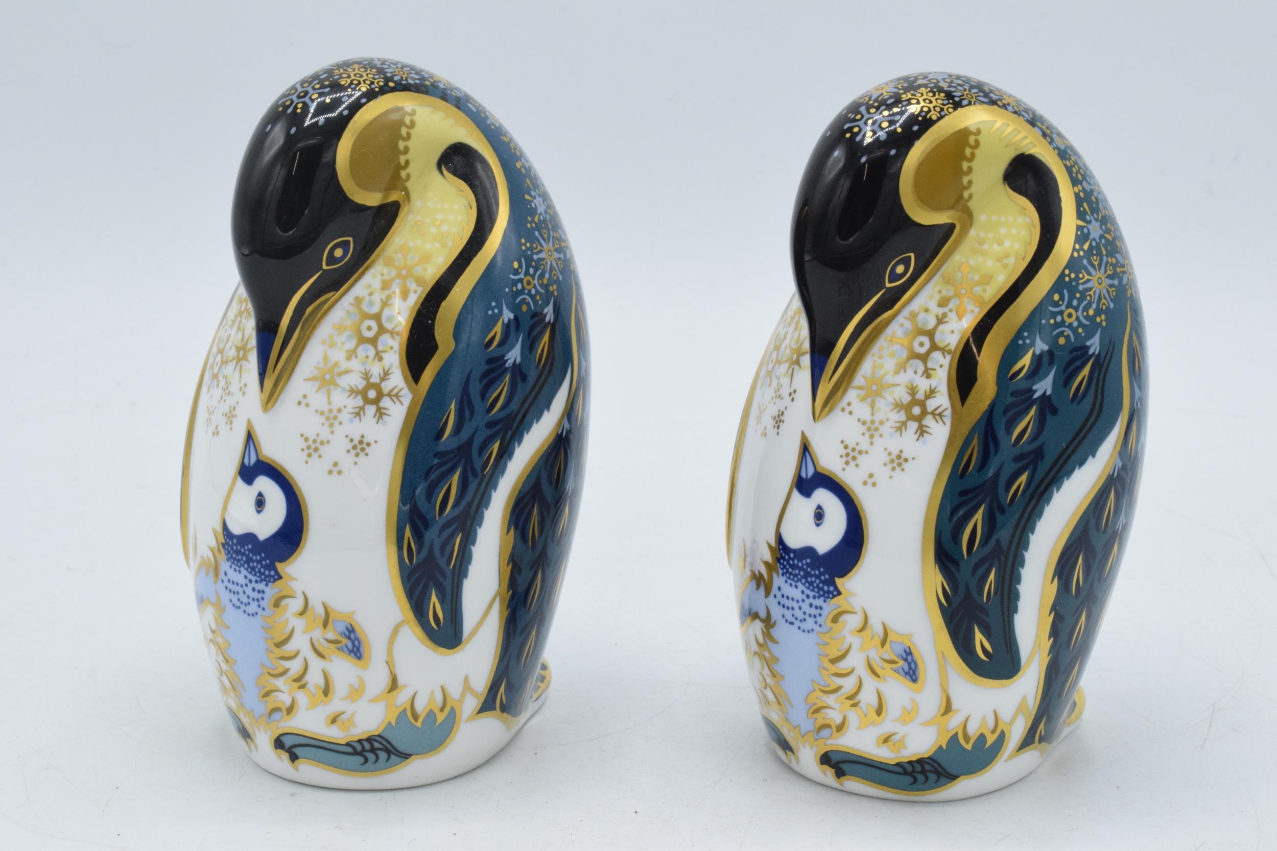 Royal Crown Derby paperweights to include a pair of Penguins with their Chicks, both seconds.