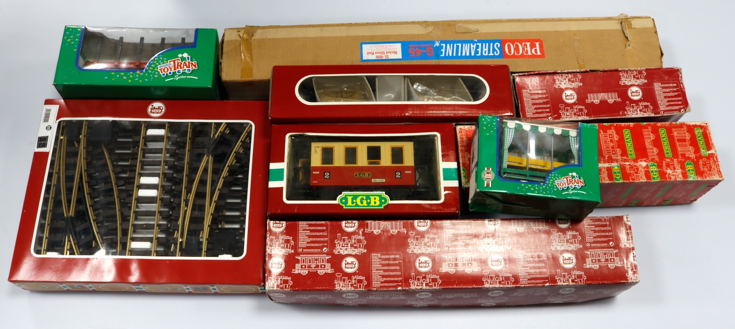 Lehmann L.G.B. various boxed wagons, track etc, including No's 41170, 19902, 94060, 30110, 93041 (9)