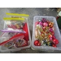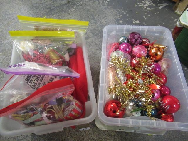 BOX OF CHRISTMAS DECORATIONS AND A BOX OF CRAFT MATERIALS