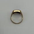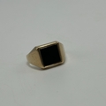 A 9ct yellow gold gents signet ring set with an Onyx stone, size U, weight 7.5 grams , nice thick shank on the ring,