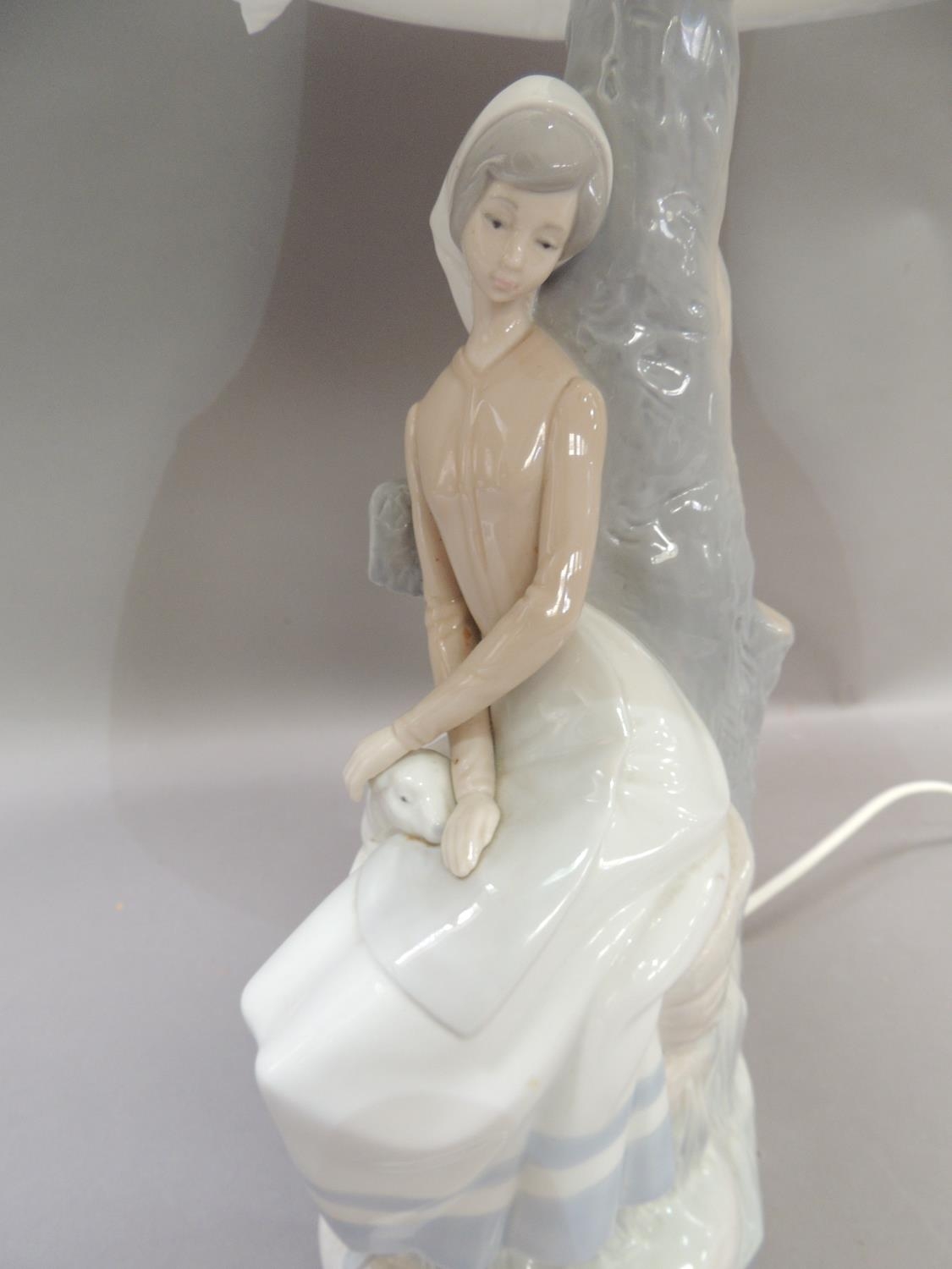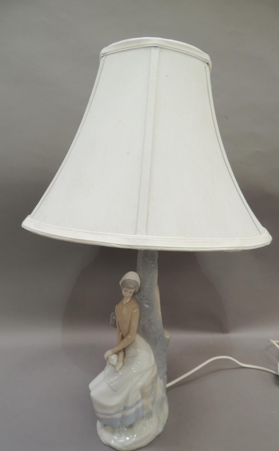A Nao lamp modelled as a country girl with sheep, 45cm to fittings approximately