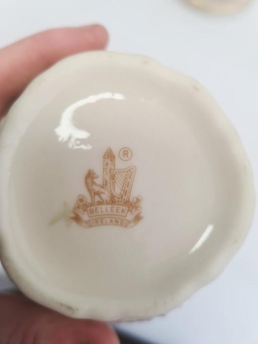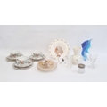 Royal Doulton model dog, Belleek porcelain vase, Shelley vase, Bunnykins plate, Murano-style fish ornament, and other items
