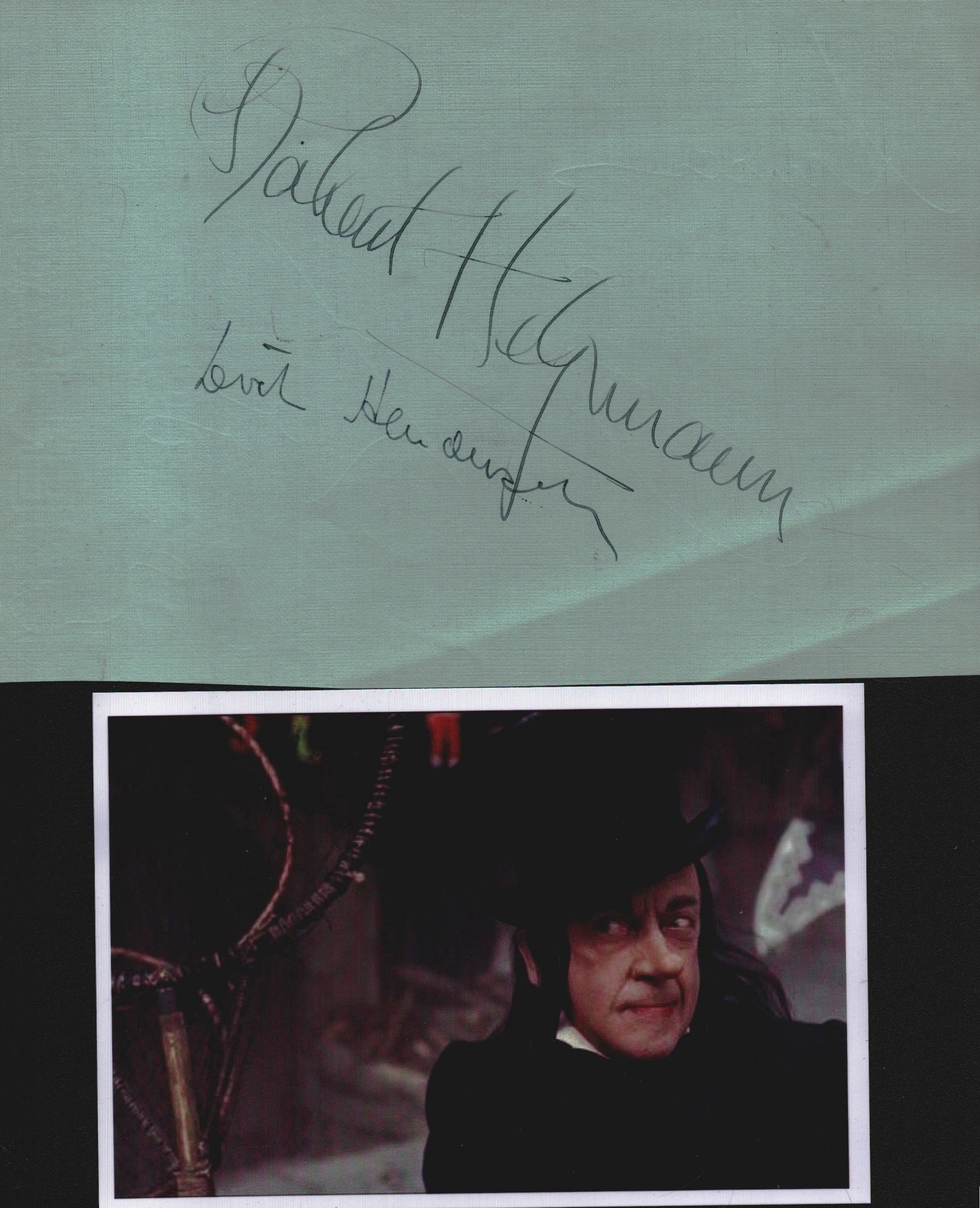 Sir Robert Helpmann signed Album page 8x5.5 inch includes 6x4 inch colour photo unsigned. 'Chitty-Chitty Bang-Bang 1968 - Robert Helpmann as Child Catcher'.