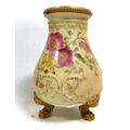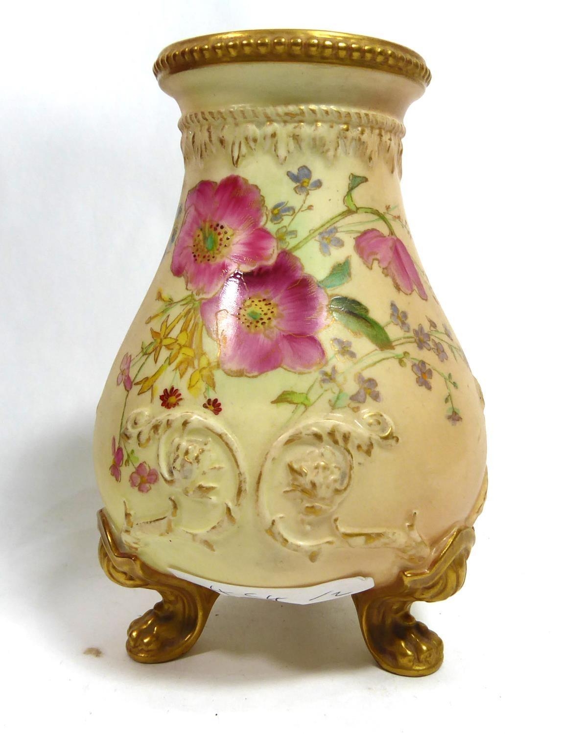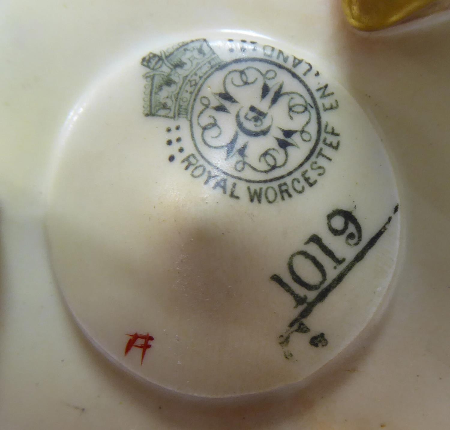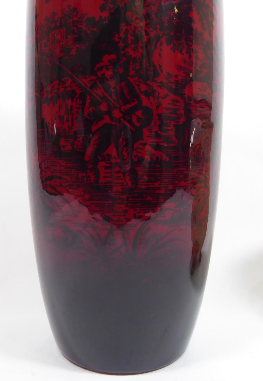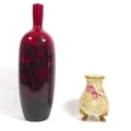 The red ground decorated in woodcut pattern (pattern number 1671), together with a Royal Worcester blush ivory vase.