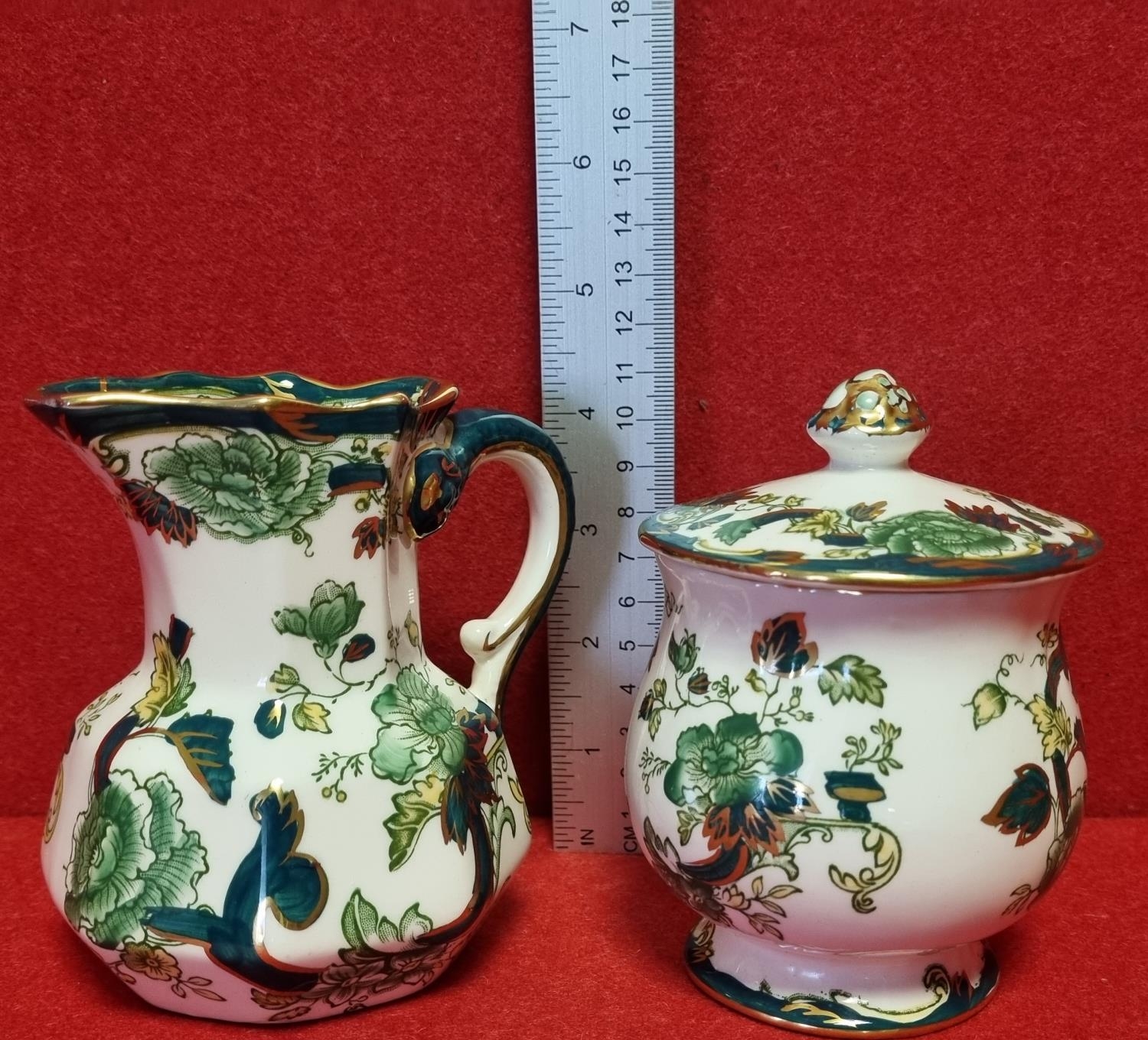 Mason Ironstone Chartreuse Jug and Sugar Bowl with Lid