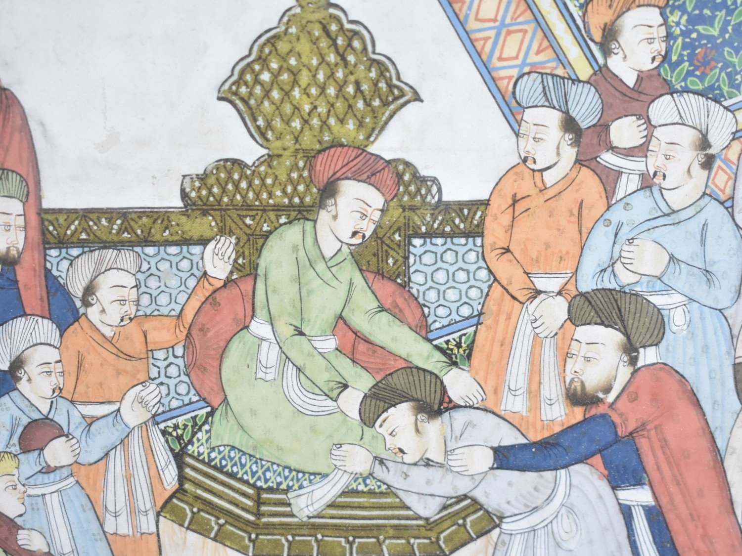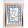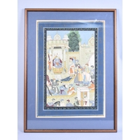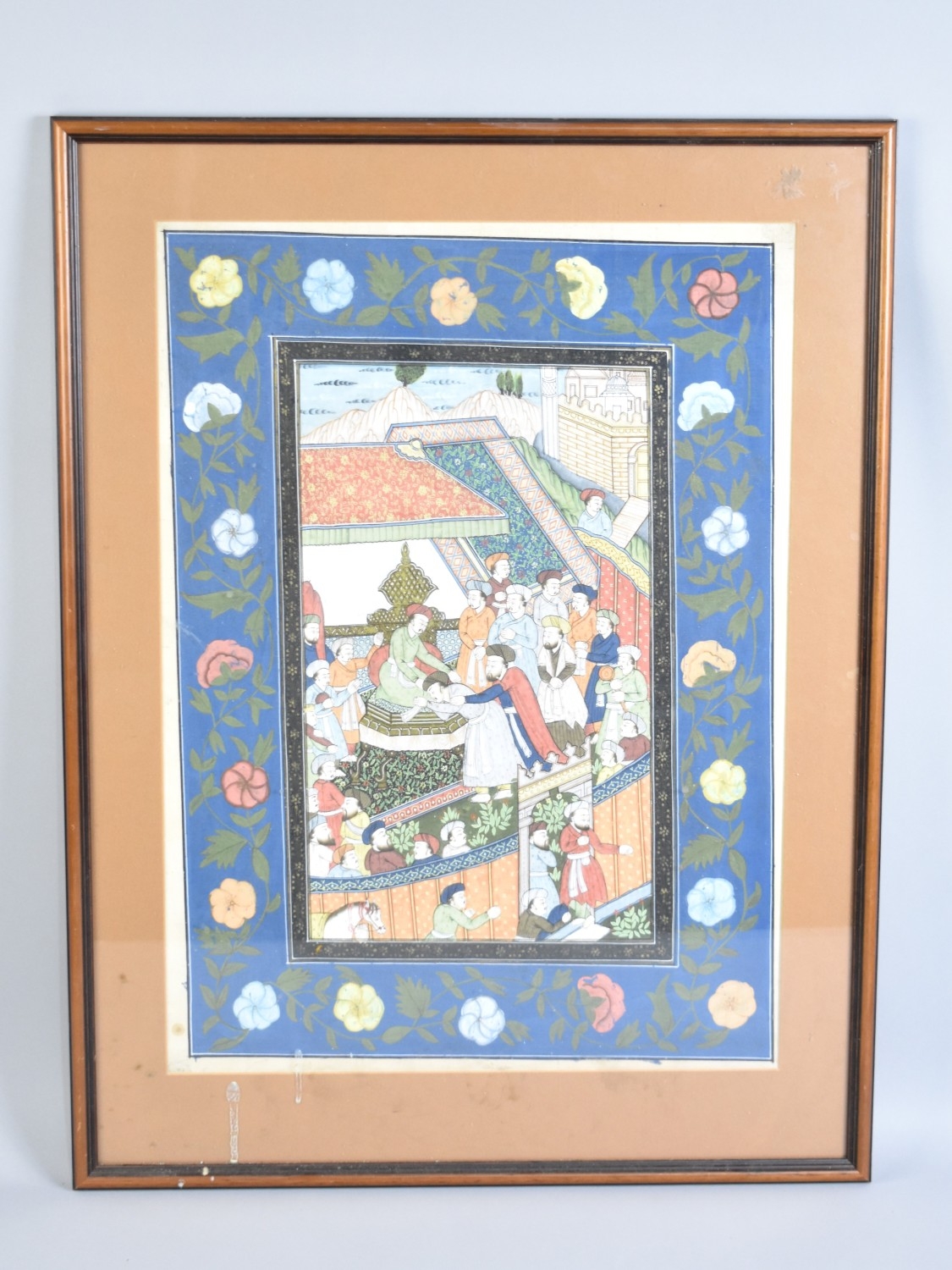 A Framed Indian Mughal Painting on Silk, 38x53cms