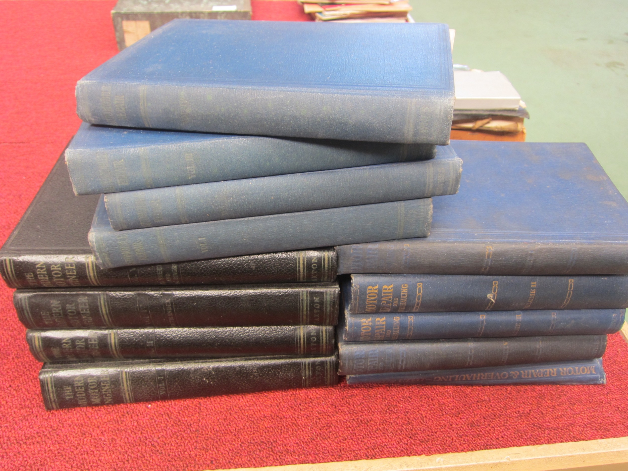 A selection of vintage Motor Repair books including; A set of four volumes (1,2,4 and 5) for "The Modern Motor Engineer" by Arthur W. Judge with photographs and illustrations, published by The Caxton Publishing Company Limited. Automobile Repair, George Newnes Ltd volumes 1-4. Motor Repair and Overhauling, George Newnes 1-4 with Motor Repair and Overhauling Data Sheets (13)