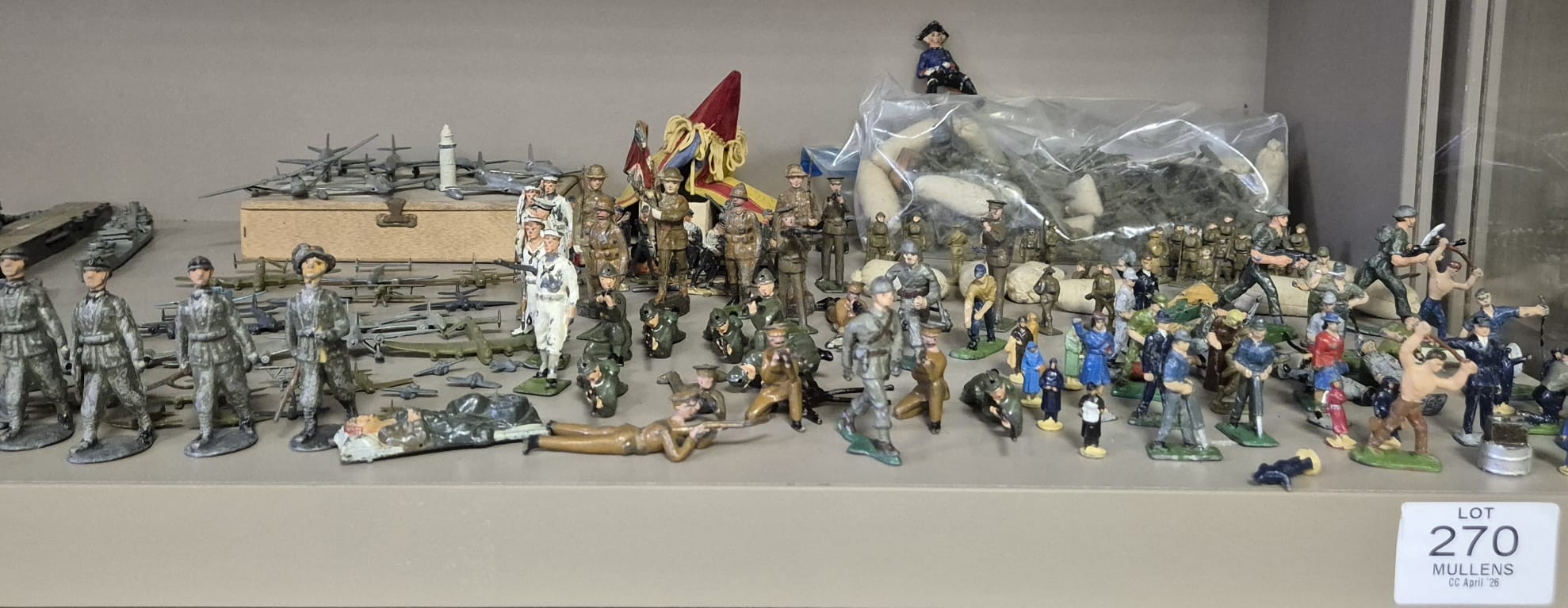 + Calendar 2026-04-17 12:00:00 2026-04-27 18:00:00 Europe/London The Collector's Cabinet Timed Online Auction Mullens Laurel Park April Collector’s Cabinet Auction showcases a variety of accessible collectibles for all budgets. The catalogue features a wonderful single owner collection of model soldiers and militaria with a strong focus on the Napoleonic wars, with some high quality, hand painted figures from niche and specialist makers from across Europe, and further afield, such as Niena in St Petersburg. The sale spans Edged weapons, through Dinky toys to some interesting and rare modern music and entertainment lots. Irish coinage along with gold and silver bullion complement a collection of Irish and international silver with some stand out pieces, including a three handled, silver banded and lined loving cup bearing the Fitzgerald family crest, part of the contents of Turlough Park House in County Mayo, some of which are included in this sale. *Please Note: toy lots may have wear, paint chips or some damage unless stated otherwise.  Unfortunately, it may not be possible to provide condition reports for lots with an estimate below €100. Lots 1-50 and Lots 66-148 will be sold as per photographs and unfortunately cannot be viewed in person, due to logistical purposes are boxed and ready for collection Mullen's Auctioneers