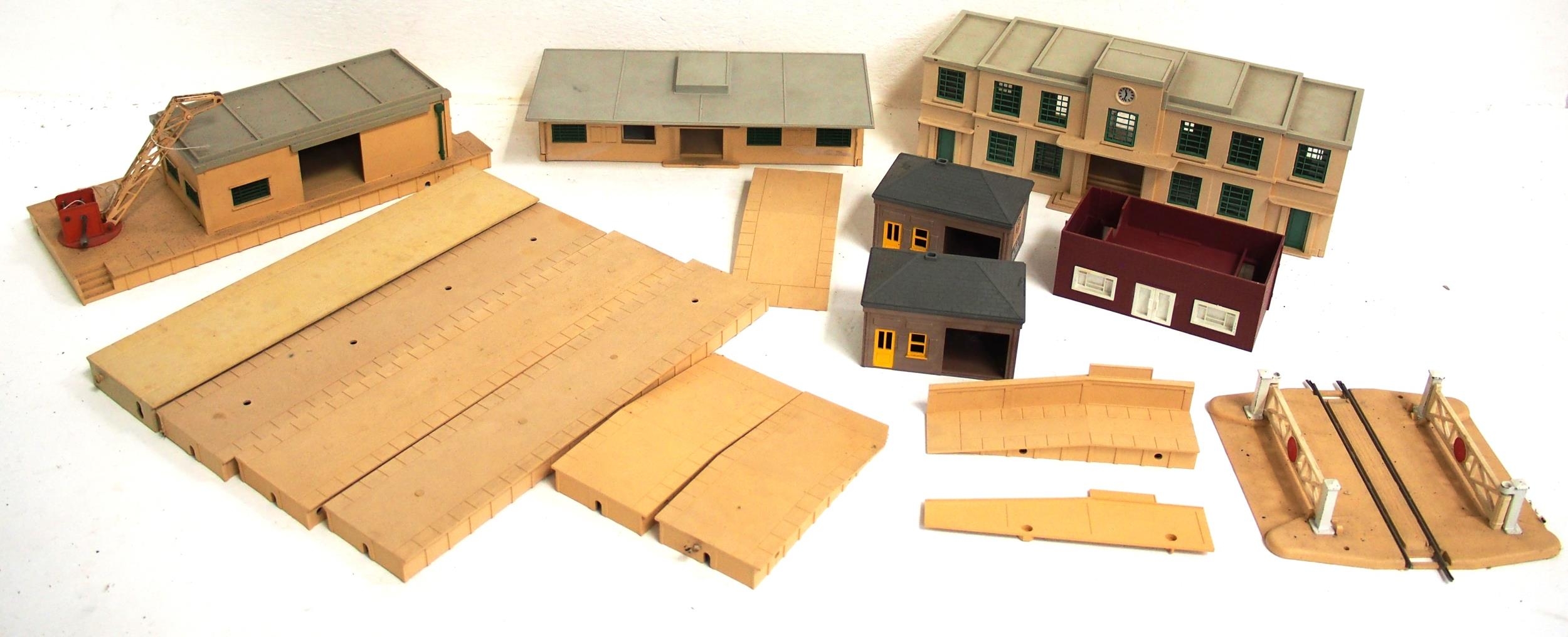 Quantity (box) of 00 gauge model buildings mainly Tri-ang & Hornby from the 1960s & 70s. (D3X) (Dispatch by Mailboxes/Collect from Banbury Depot)