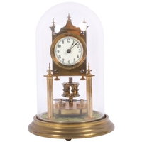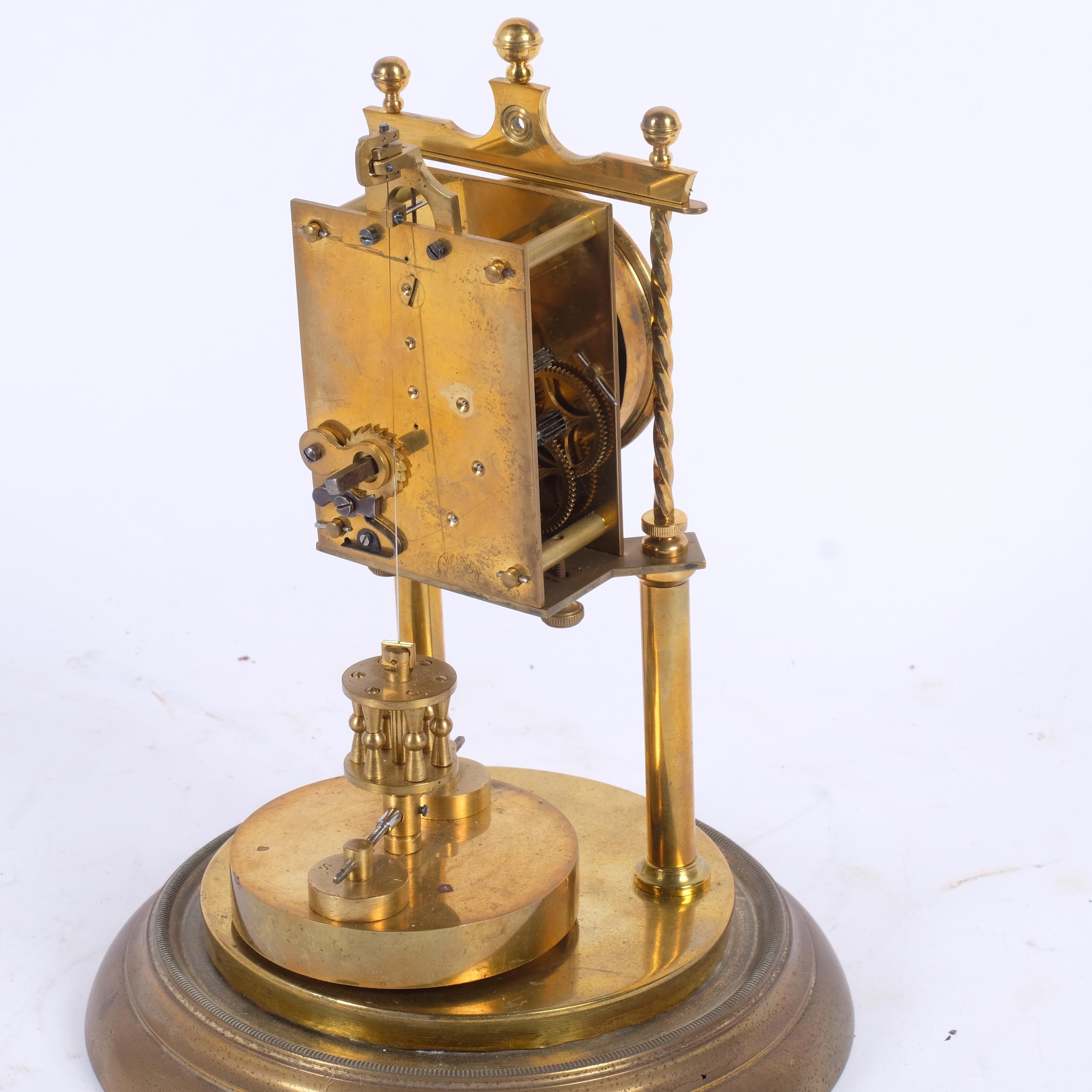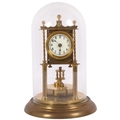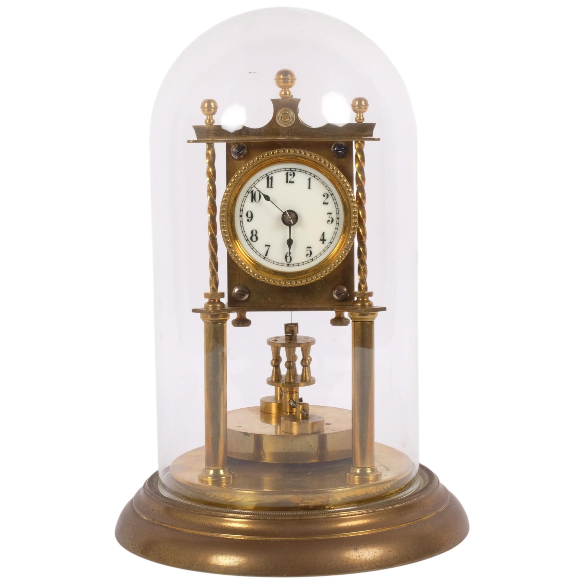 A 19th century brass torsion pendulum 400-day mantel clock, under glass dome on brass base, H28cm
