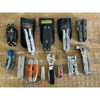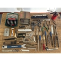 Mixed tools to include gauges, spanners, multitools, an oil can etc