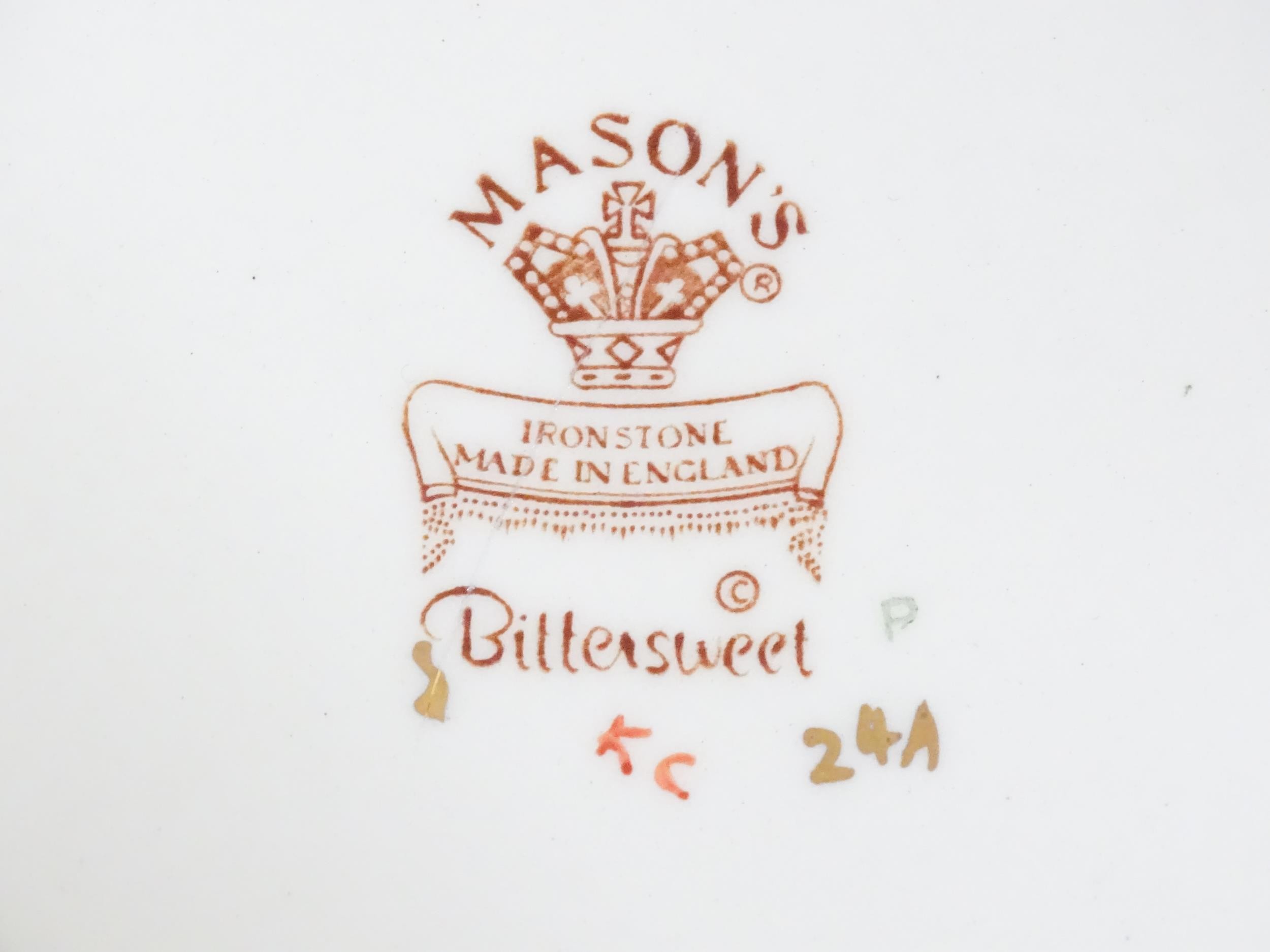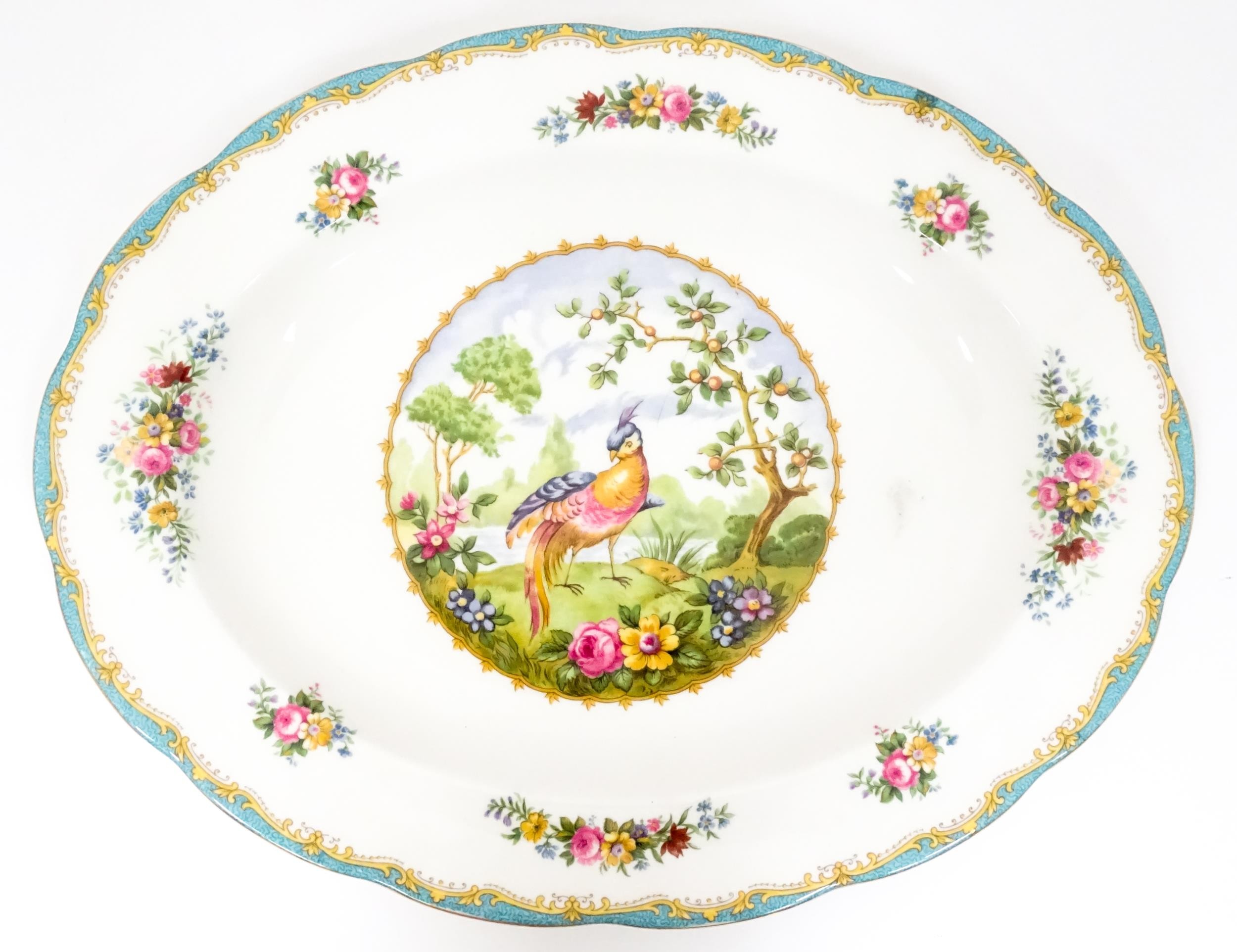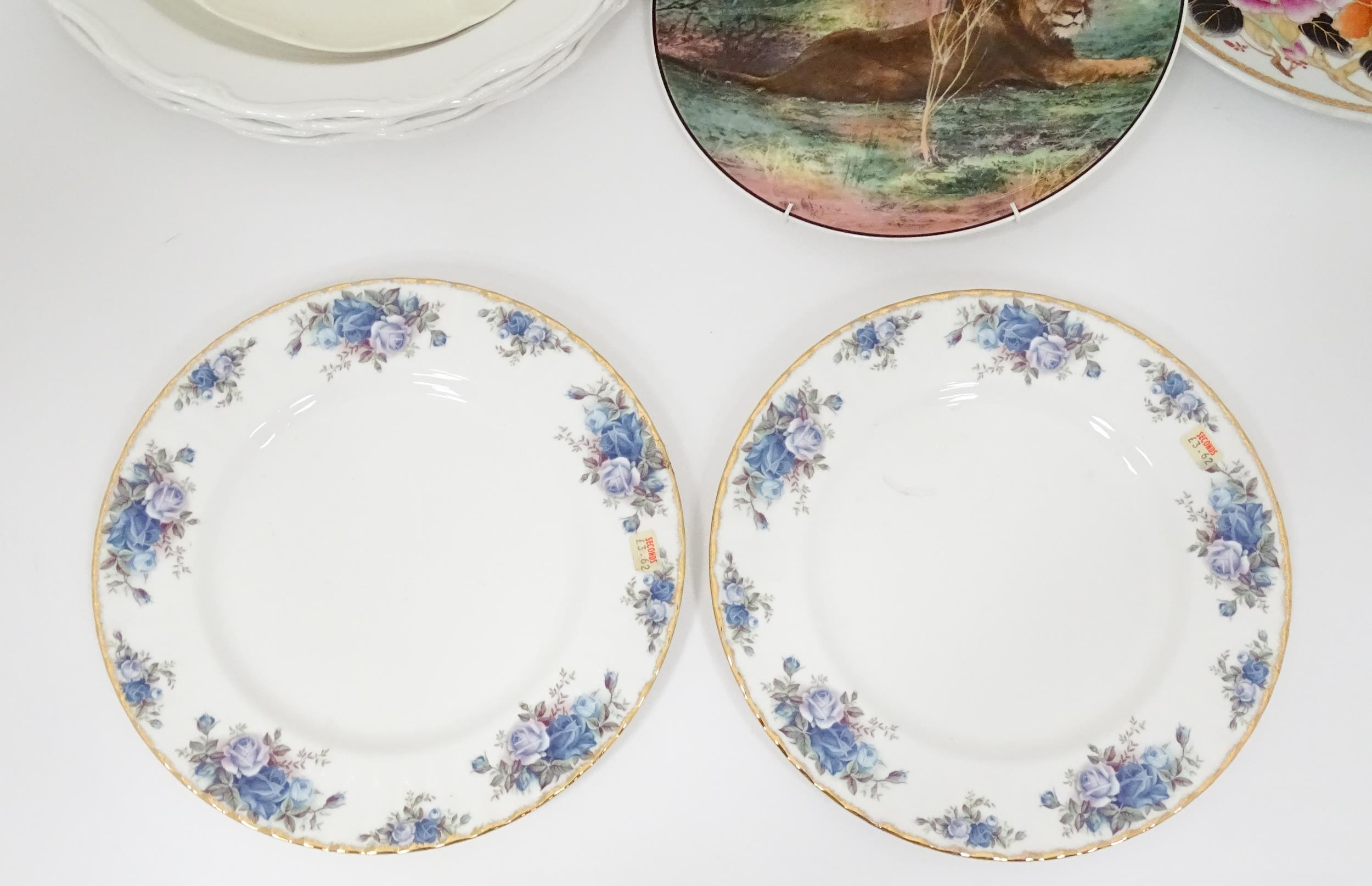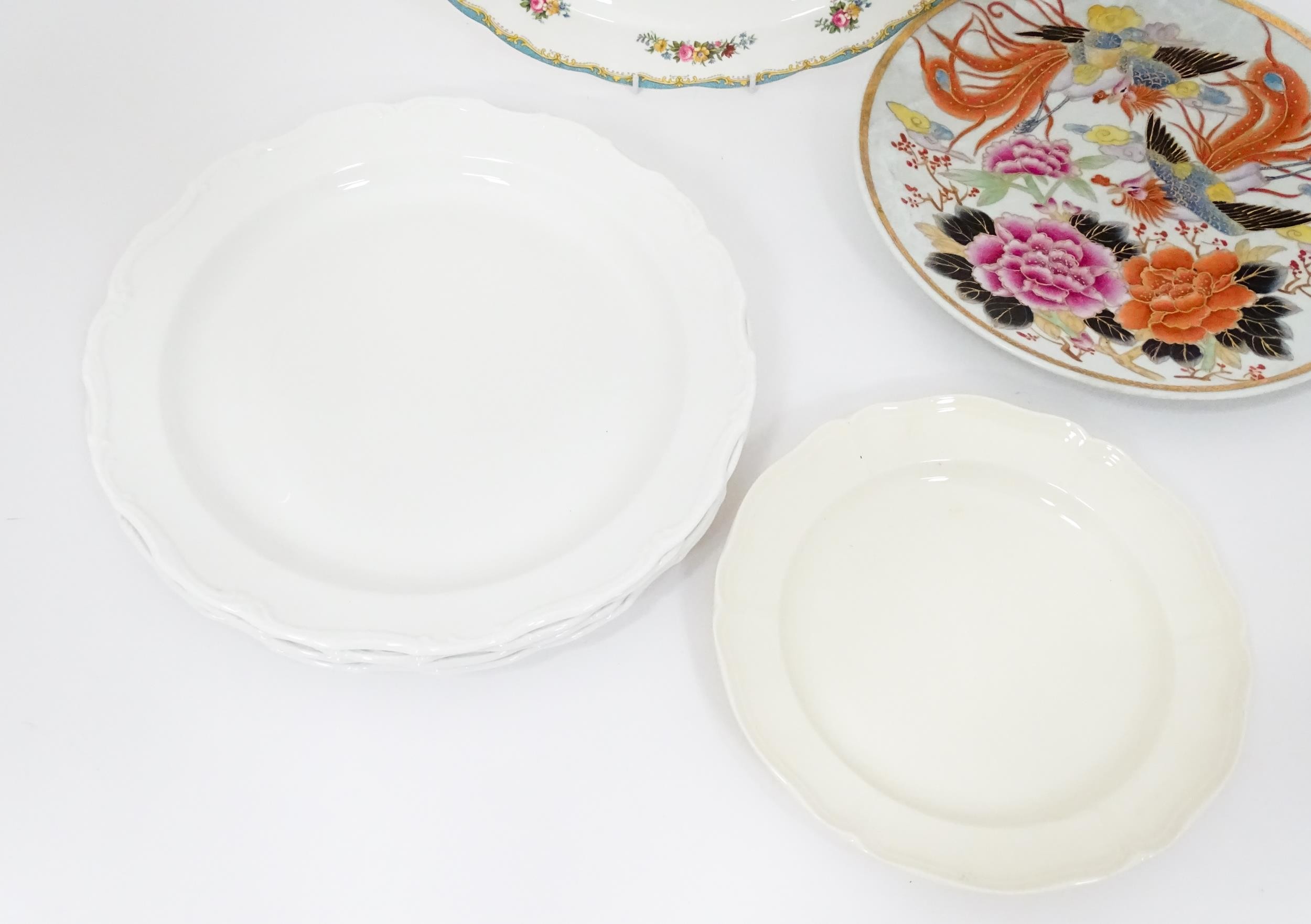 Assorted ceramics to include Royal Albert serving plate decorated in the Silver Birch pattern, a Mason's plater decorated in the Bittersweet pattern, a Royal Doulton dish in the Caprice pattern, two Royal Albert plates in the Moonlight Rose pattern, a Royal Doulton plate with lion detail from the African Series, four Royal Albert plates in the Gossamer pattern, an Oriental plate decorated with phoenix birds and flowers, etc. Largest plate approx. 13" diameter