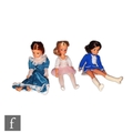 Three late 1970s Pedigree Sindy dolls, a brunette Sindy dressed in complete Majorette outfit, an auburn Sindy in My Fair Sindy outfit and a 2nd Gen blonde Sindy dressed in an Active Sindy outfit (lacking shoes). (3)