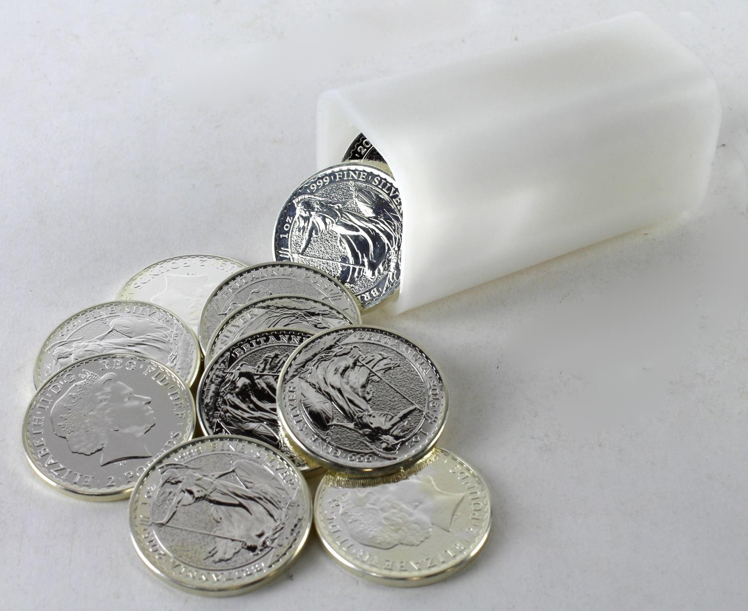 GB Silver one ounce Britannias (20) in a tube all dated 2015...