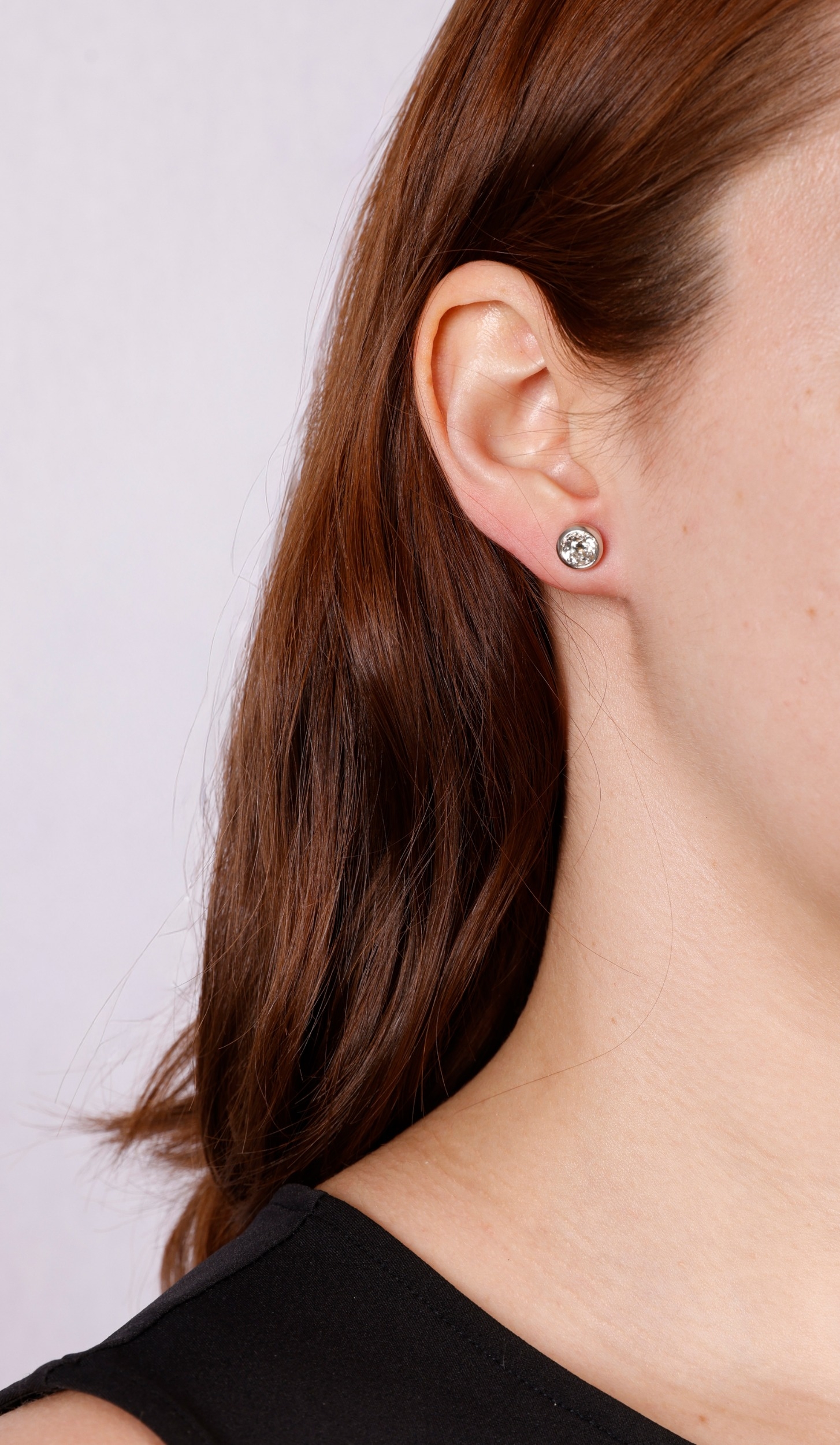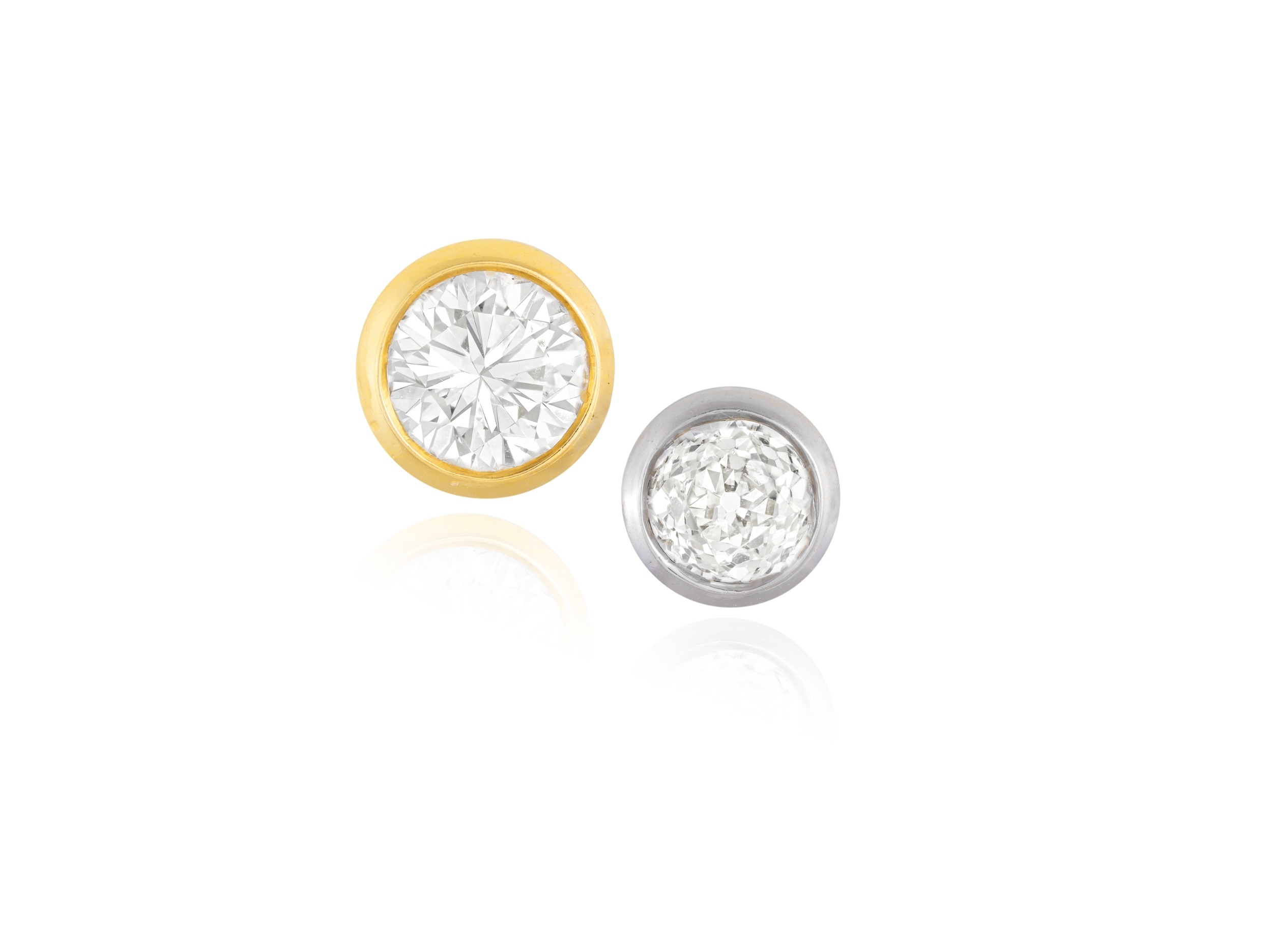 One old-cut diamond in white gold, approx. 1.00ct, estimated colour H/I, estimate clarity VS One brilliant-cut diamond in yellow gold, approx. 1.80ct, unable to assess colour due to yellow mount, estimated clarity VS Both for pierced ears and not matching Normal signs of wear, overall in good condition Total gross weight approx. 4.3g