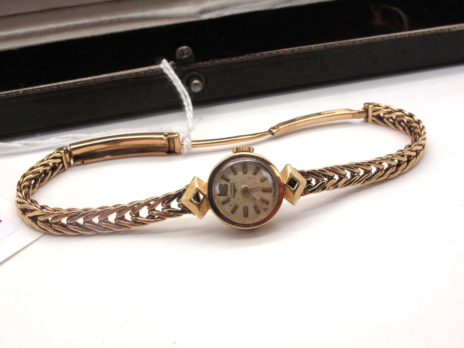 Longines; A Vintage Ladies Wristwatch, the signed dial with Arabic numeral and line markers, within plain case, to integral openwork bracelet with 9ct gold foldover clasp, in original Longines case.