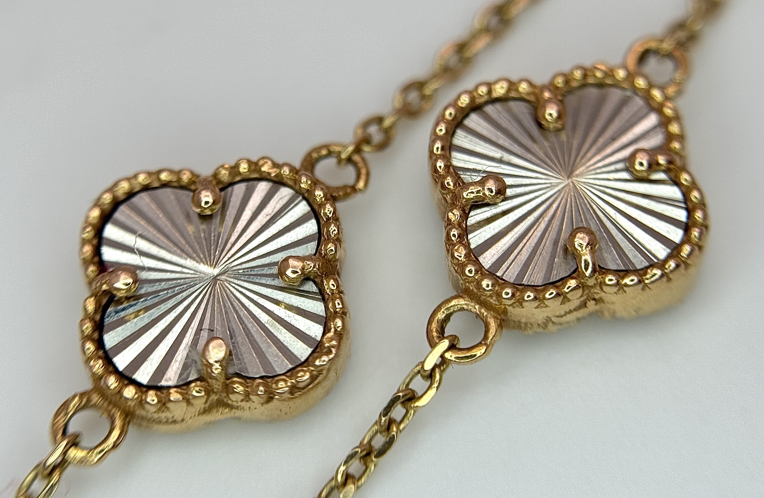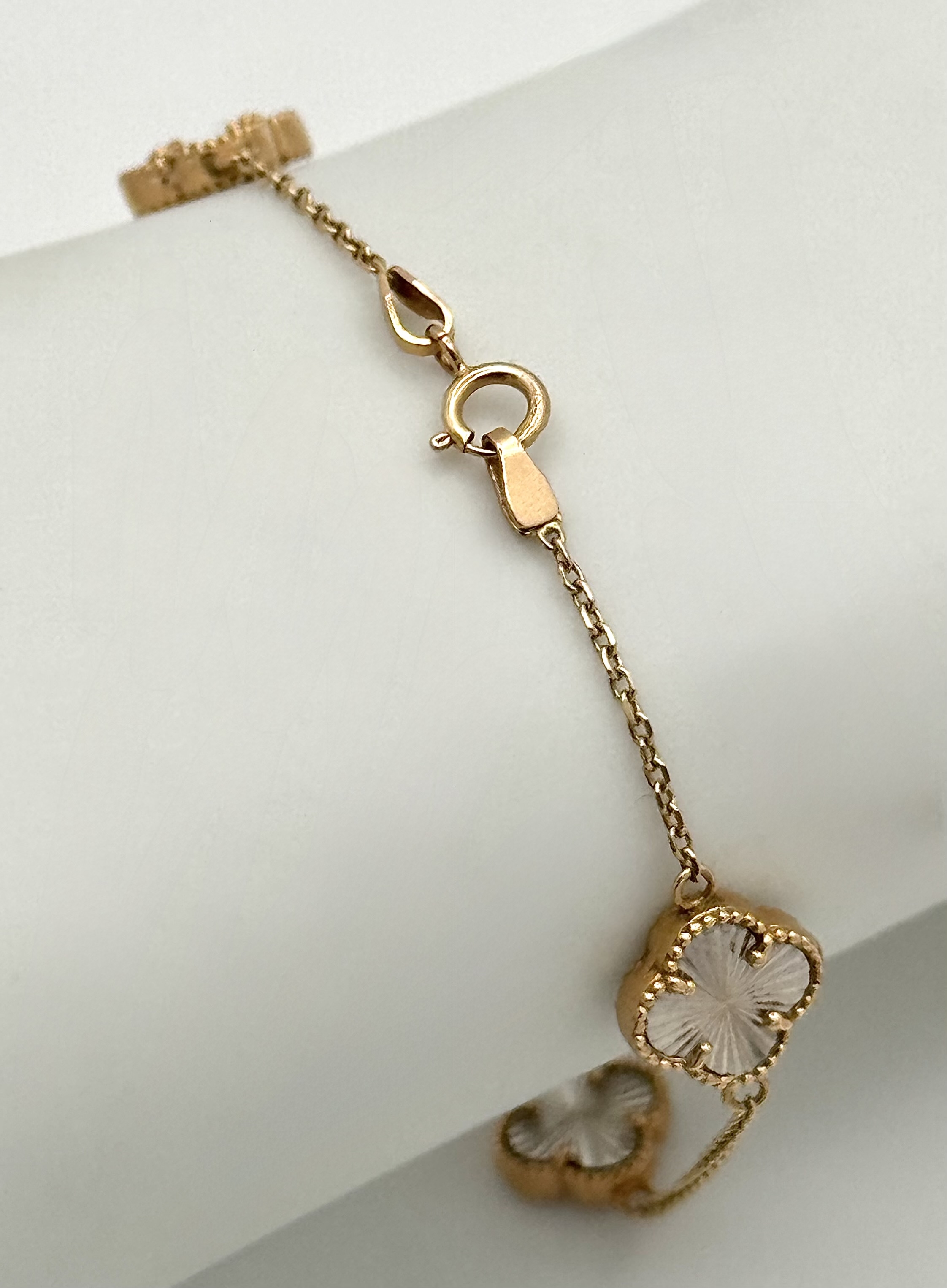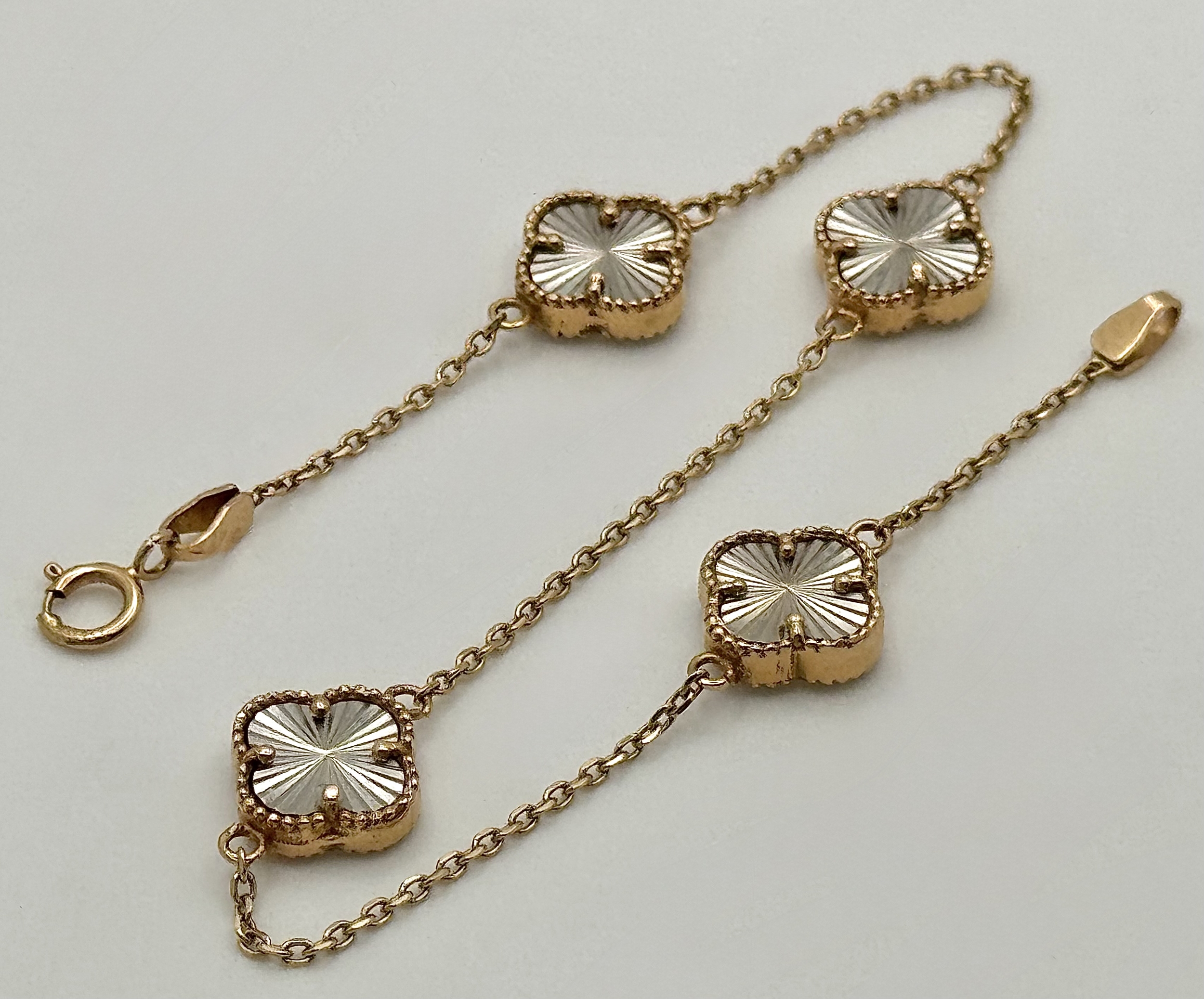 AN 18K ROSE GOLD CLOVER BRACELET, WITH 18K WHITE GOLD CLOVER PARTS. TOTAL WEIGHT 5.4G. SC 1044