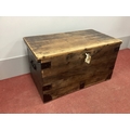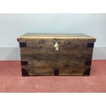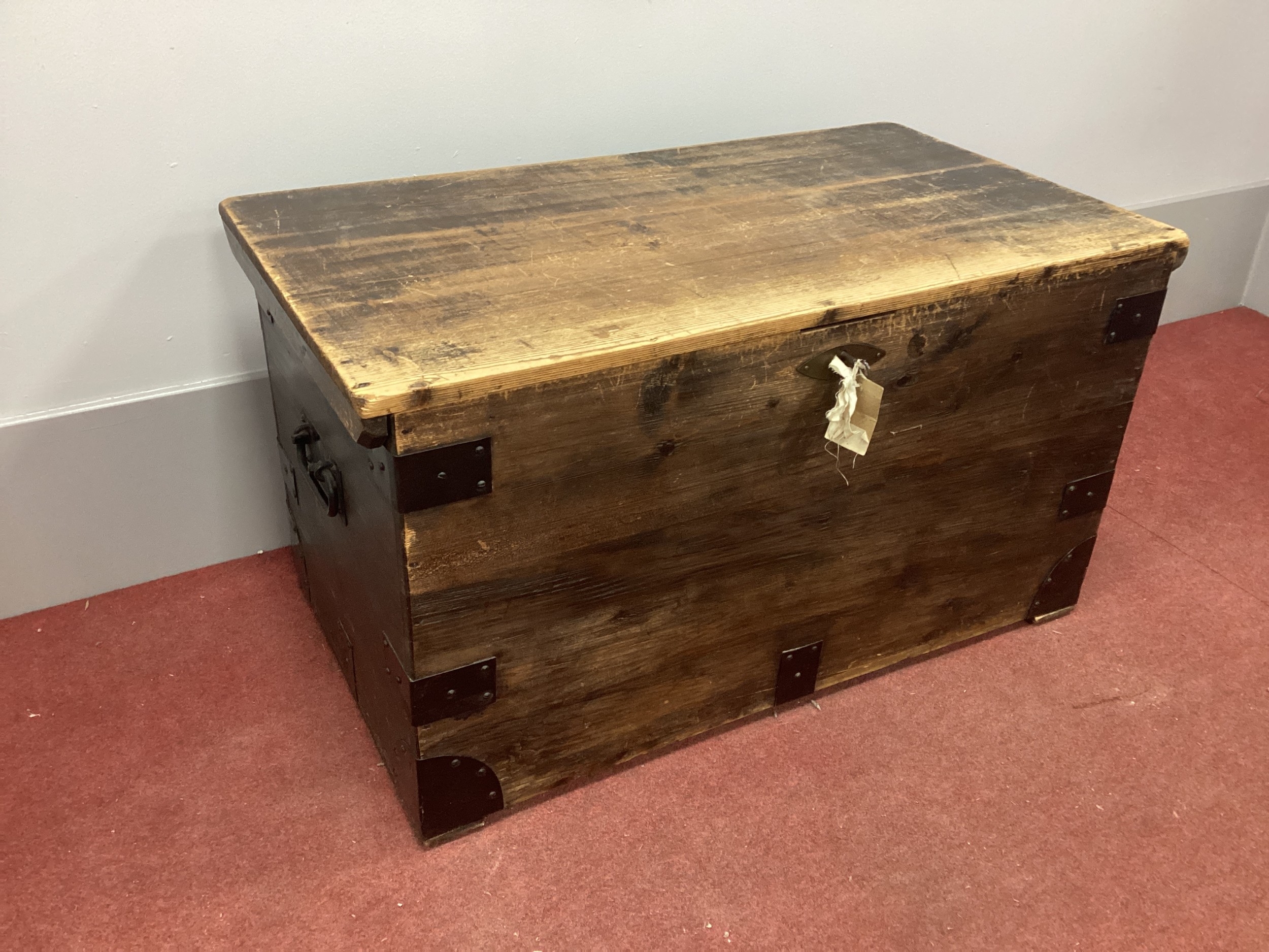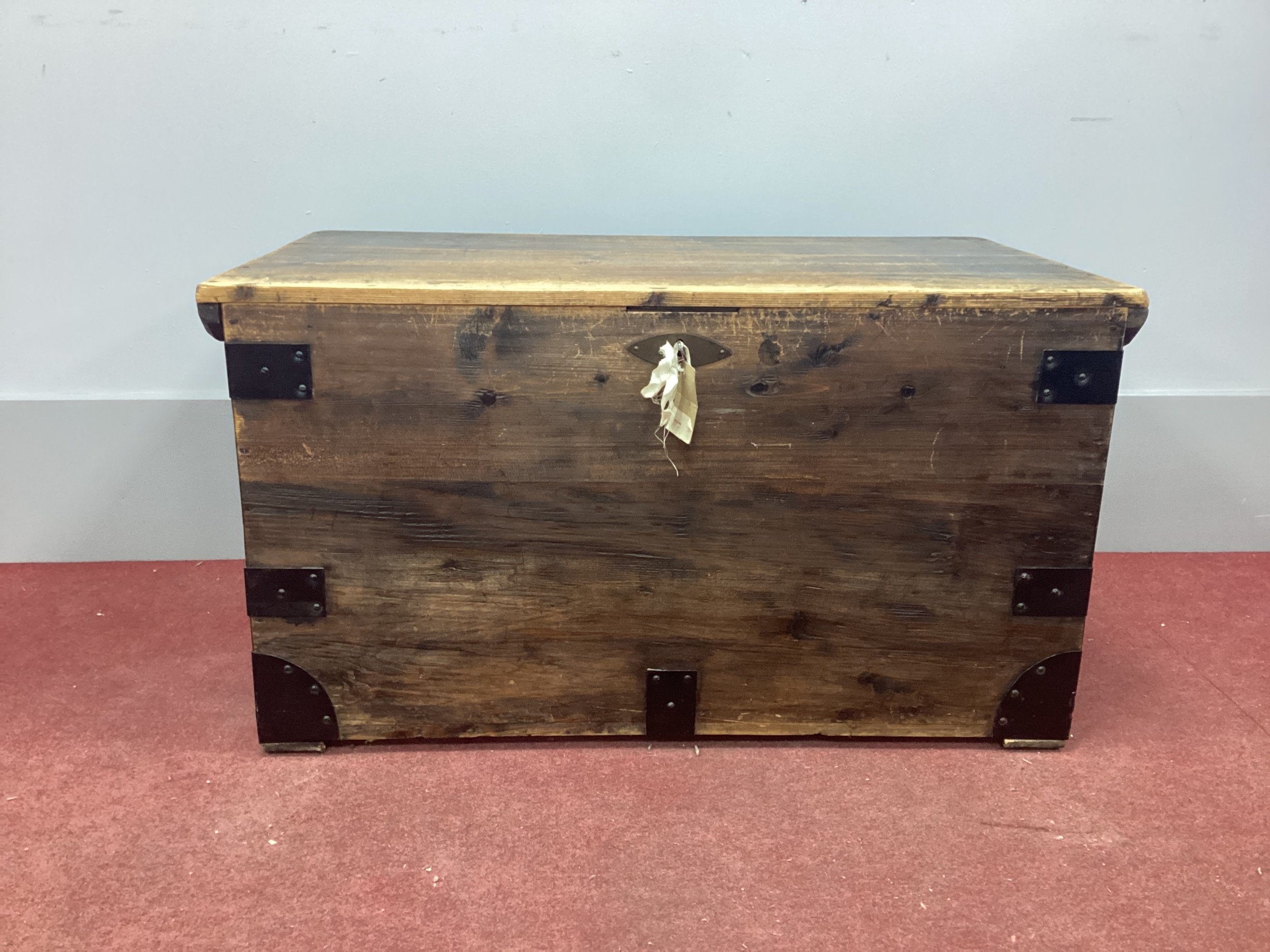 A XIX Century Iron Bound Pine Blanket Box, with hinged lid and iron corner brackets, 88cm wide.