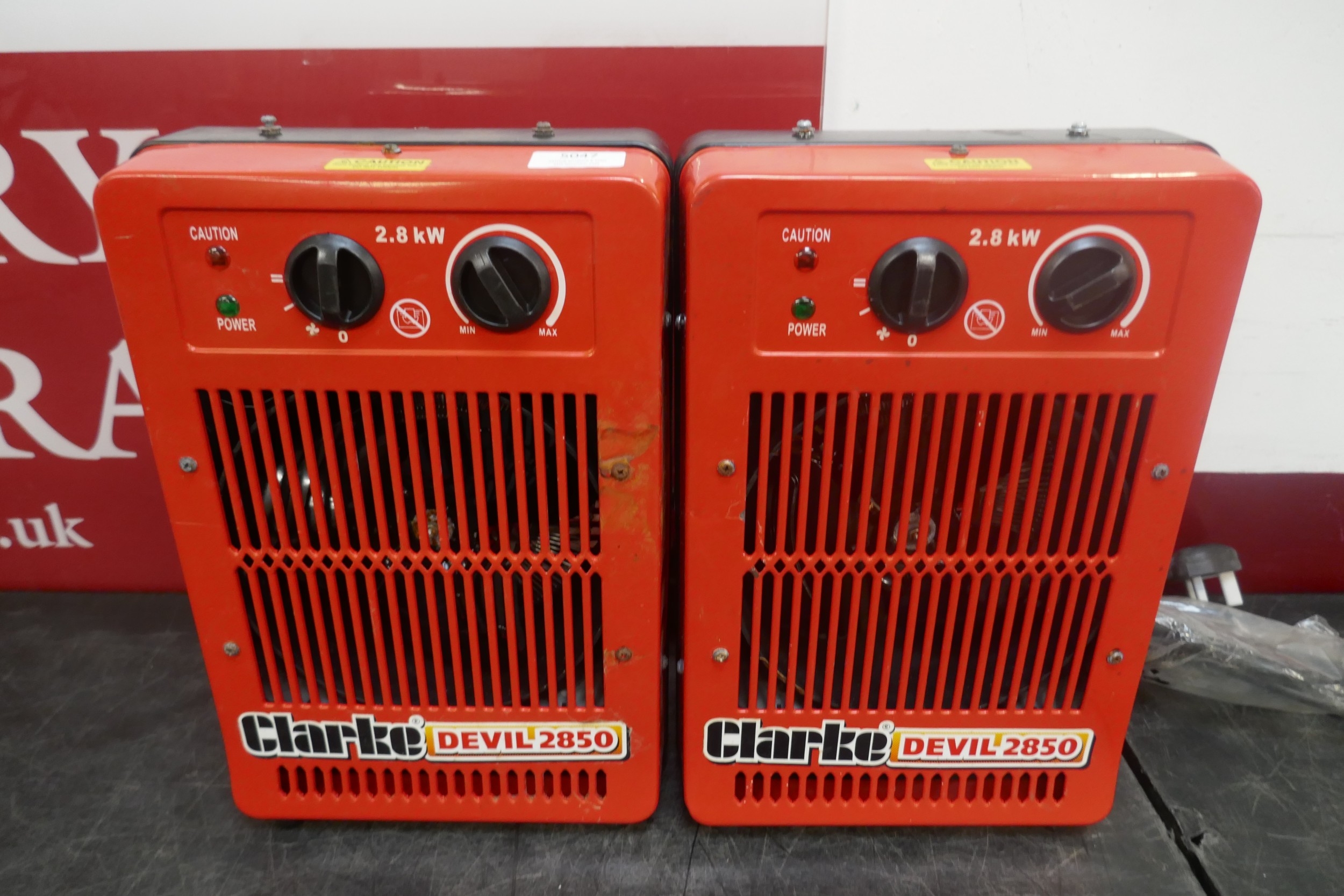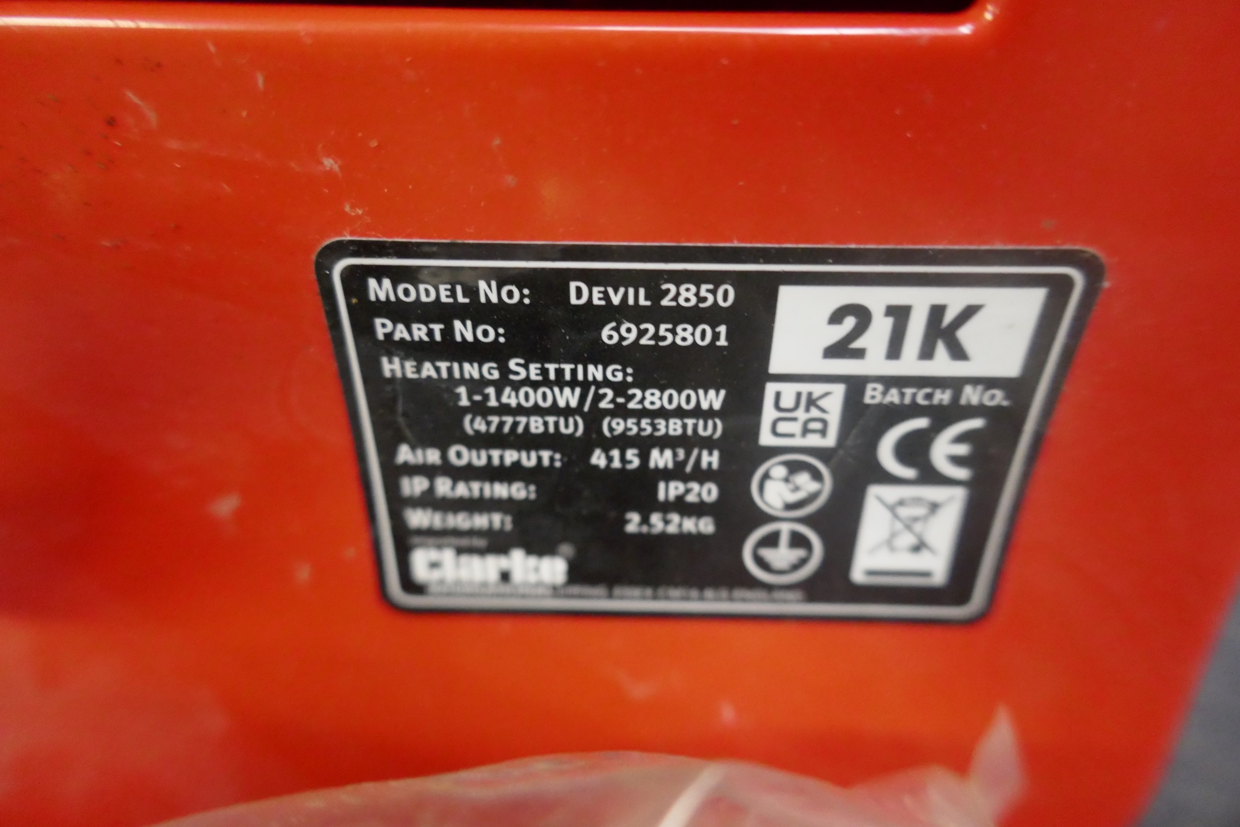Two Clarke Devil 2850 fan heaters *This lot is SOLD AS SCRAP ** This lot is subject to VAT
