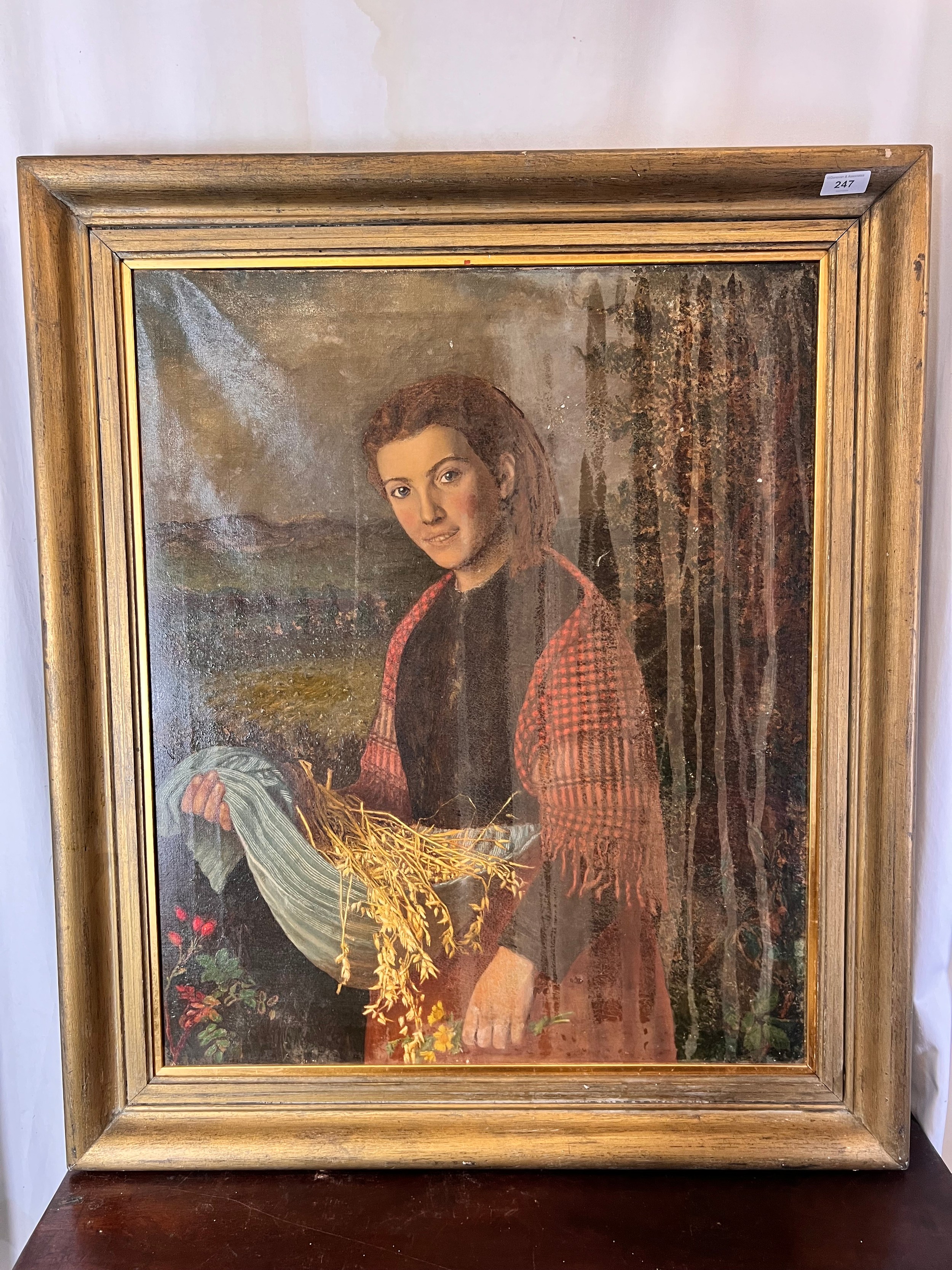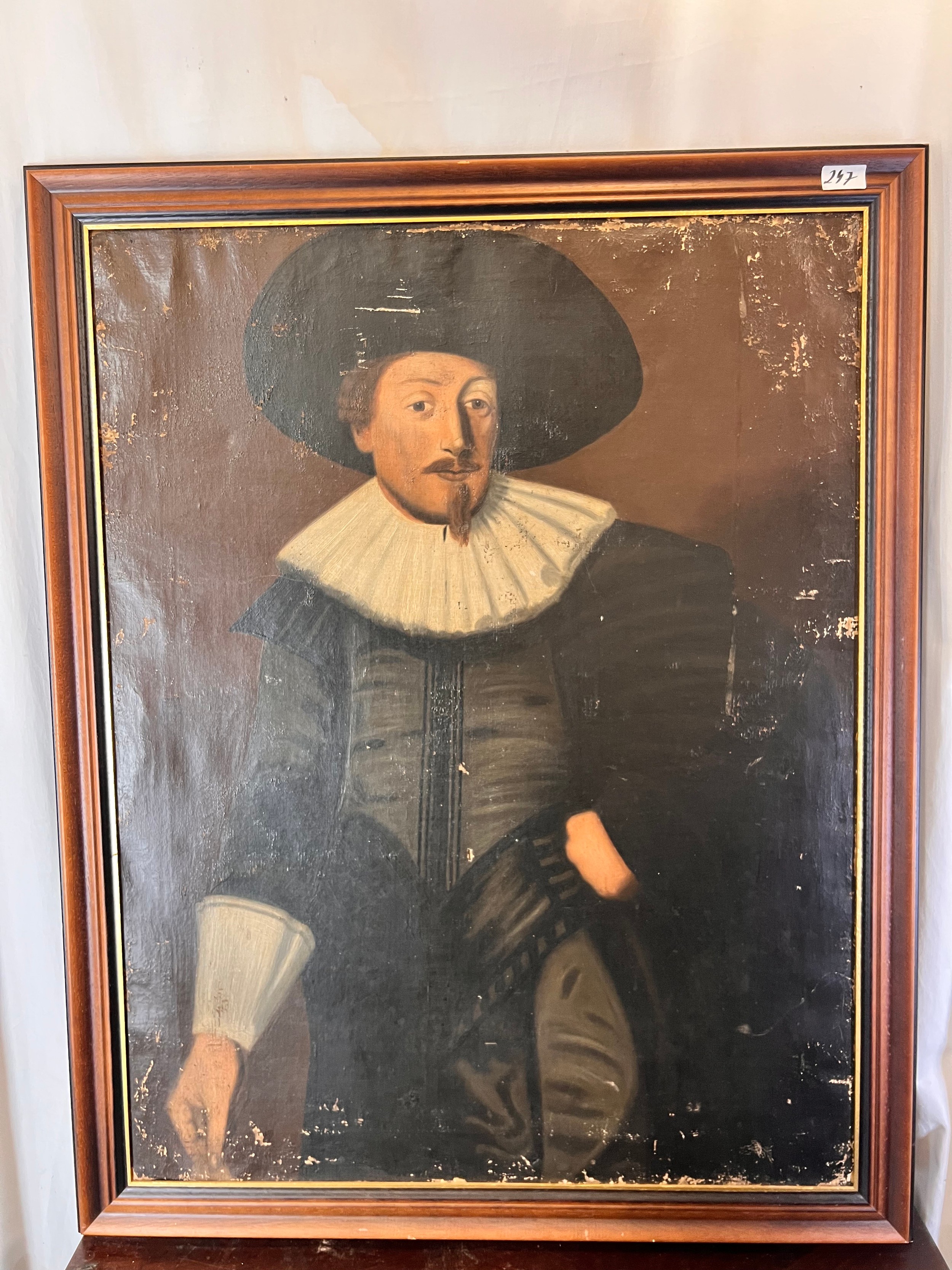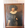 A large portrait of a lady, oil on canvas, 36'' x 31'' in a gilt frame with a partial label verso. Also large oil on canvas of a Gentleman